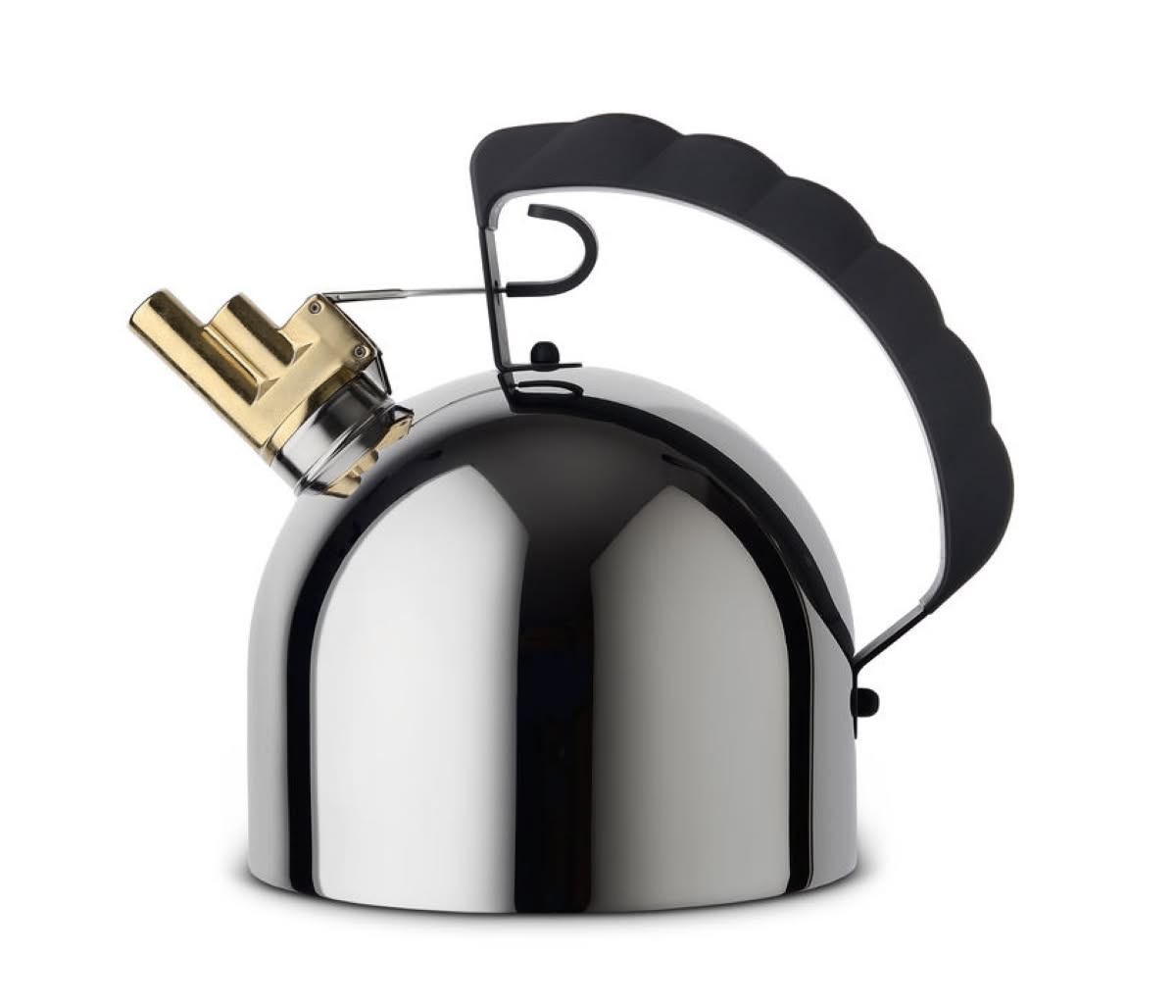 Alessi 9091 FM Bollitore in acciaio Inox Richard Sapper | Bollitore in acciaio inossidabile 18/10 con fischietto melodico in ottone e manico in PA Fondo in acciaio magnetico adatto alla cottura ad induzione