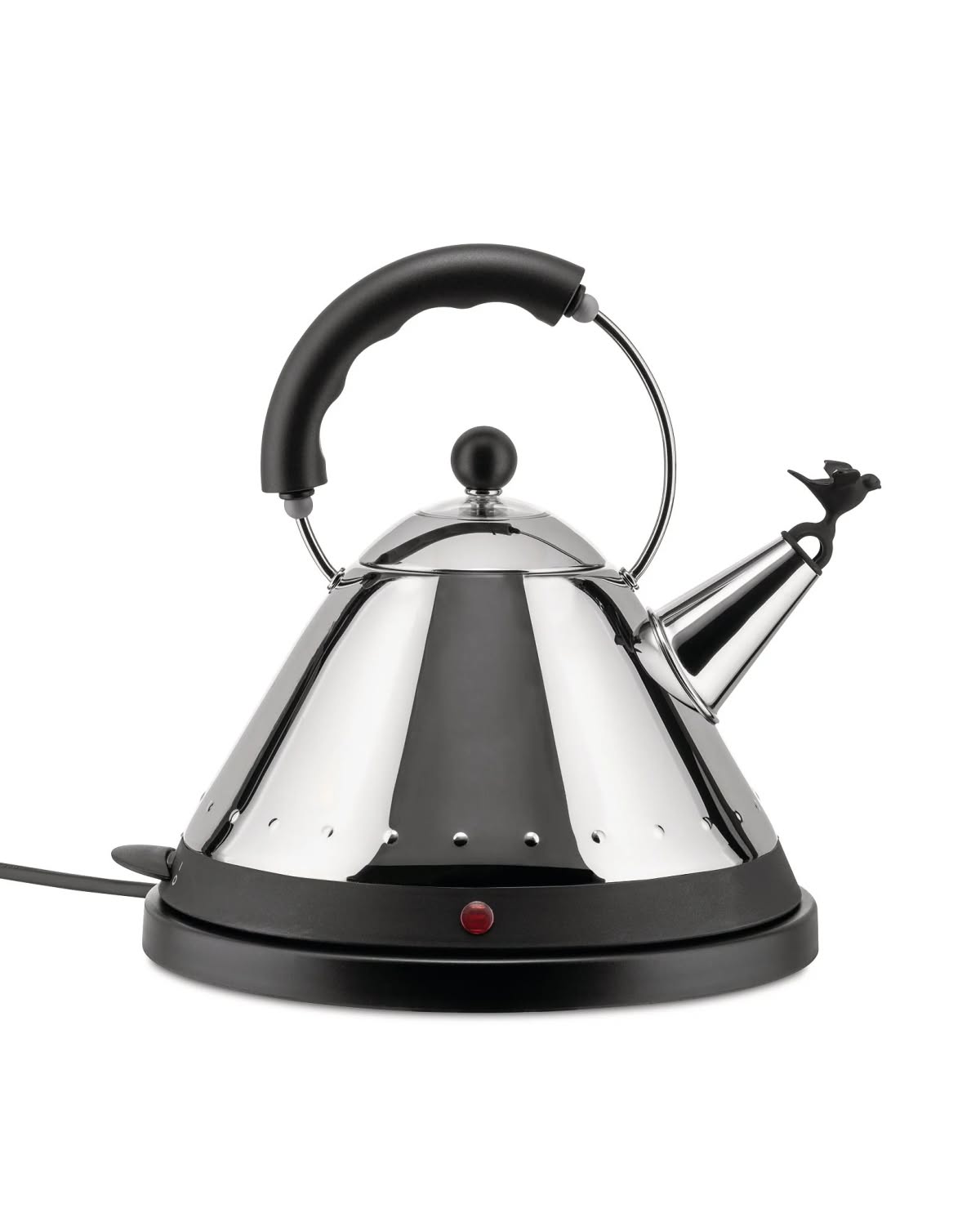 Alessi MG32 B Bollitore elettrico cordless Acciaio-Nero Michael Graves | Bollitore elettrico cordless in acciaio inossidabile 18/10 lucido con manico e base in resina termoplastica Spina europea 2000W