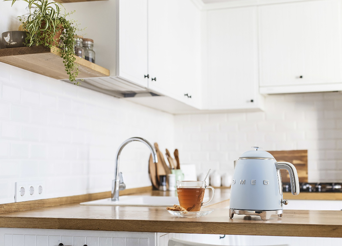Mini Bollitore Smeg KLF05PBEU Azzurro lucido | Elettrodomestici design, bollitore elettrico piccolo acciaio inox retrò, bollitore 0,8L, estetica 50's Style, vintage