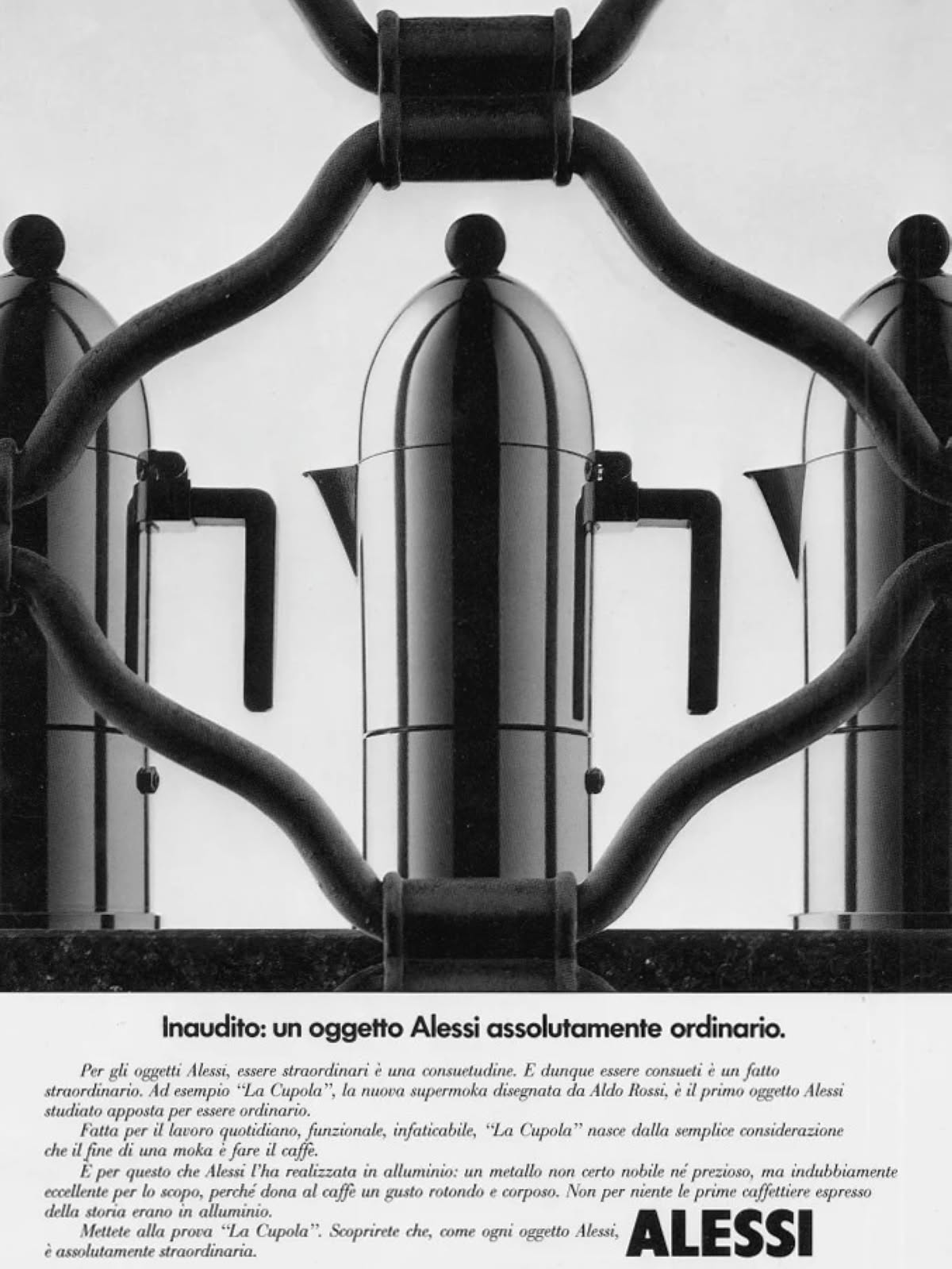 Alessi A9095/6 B La Cupola Caffettiera espresso 6 tazze Nero è la caffettiera di design in fusione di alluminio. Manico e pomolo in resina termoplastica, nero. 6 tazze. La cupola è la caffettiera disegnata da Aldo Rossi nel 1988. Nata dal desiderio dell'autore di creare una caffettiera alla portata di tutti, dimostra la capacità di sintonizzarsi sui gusti del pubblico propria dei grandi designer: una caffettiera moka “per tutti”, in un bell’alluminio che scalda il gusto del caffè all’italiana, ottenendo in effetti un grande successo di pubblico, è una piccola architettura da tavola con il tetto a cupola. Un oggetto funzionale e al tempo stesso bello da vedere, un'icona dell'industrial design contemporaneo con il quale preparare e servire un ottimo caffè. Con le sue linee ricercate ma allo stesso tempo semplice e leggere, La cupola è una vera e propria caffettiera di design, e simboleggia l'equilibrio tra estetica e funzionalità promosso da Alessi.