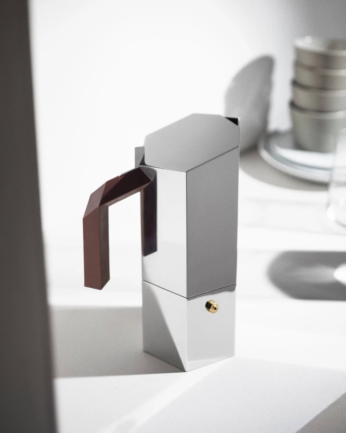 Alessi MA01/6 Menhir Caffettiera espresso Burgundy 6 tazze Michael Anastassiades | Caffettiera espresso in acciaio inossidabile 18/10 Manico in resina termoplastica Caldaia in acciaio magnetico adatto anche alla cottura ad induzione