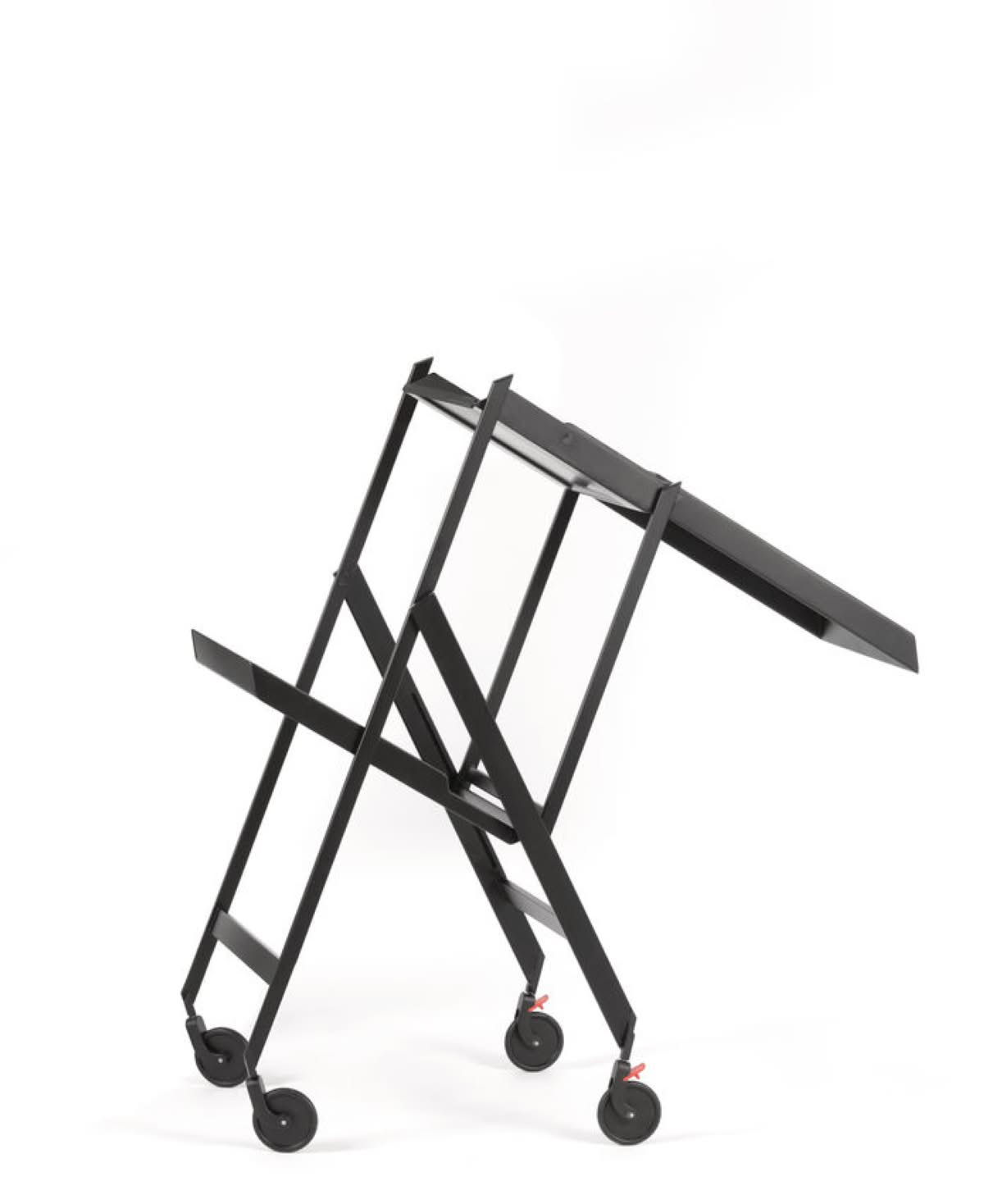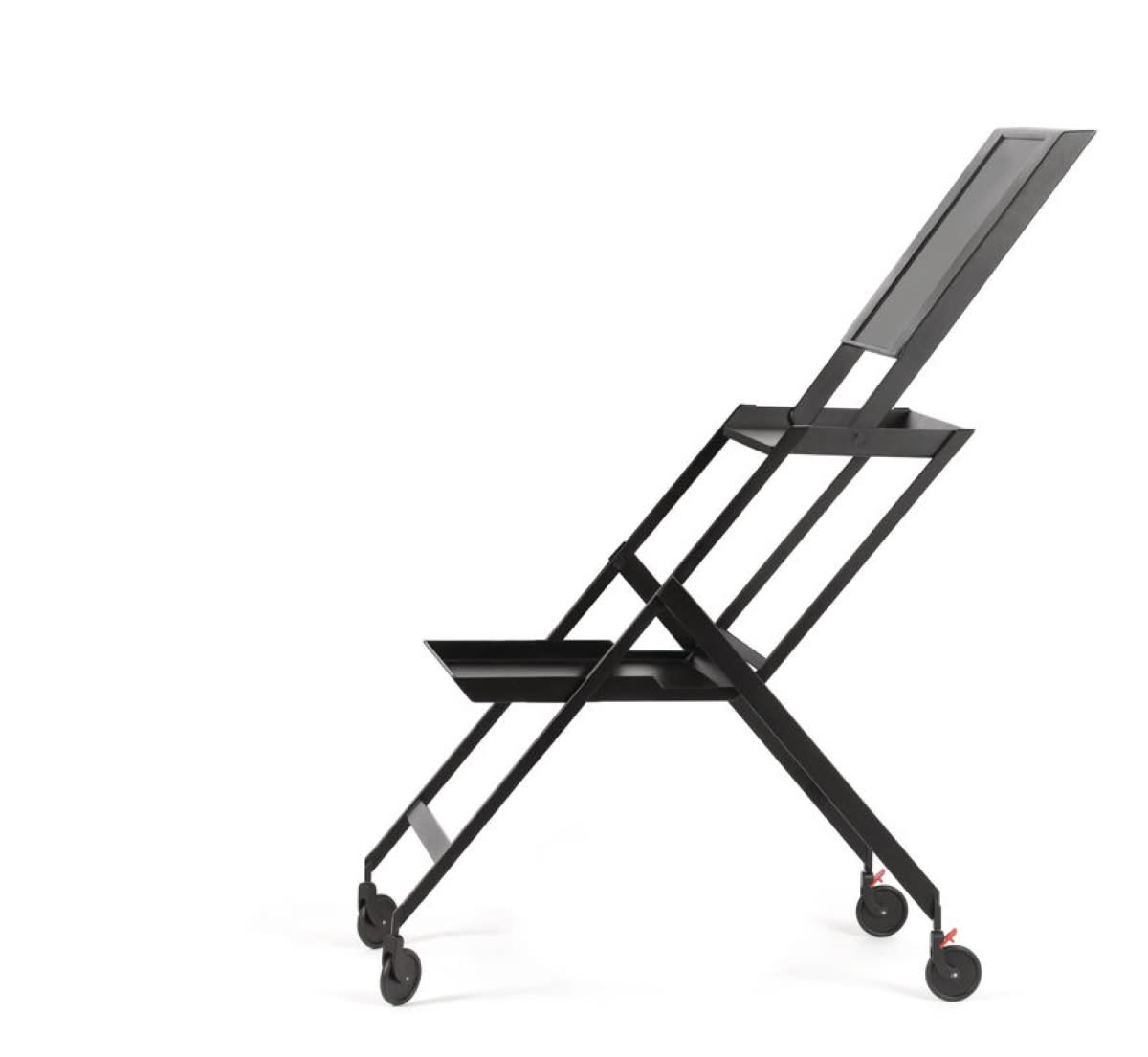 Alessi RS11 B Plico Carrello pieghevole Richard Sapper | Carrello pieghevole in acciaio colorato con resina epossidica, nero. Piani in poliuretano
