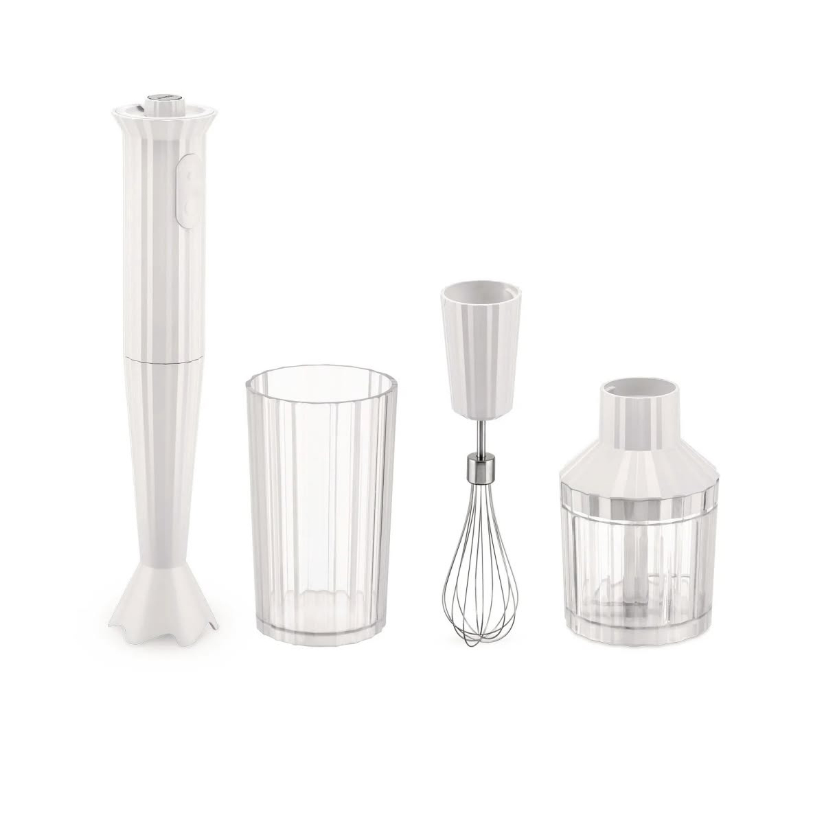 Alessi Plissè MDL10S W Frullatore a immersione Bianco Michele De Lucchi | Frullatore a immersione con bicchiere graduato, frusta e tritatutto in resina termoplastica spina europea 500W