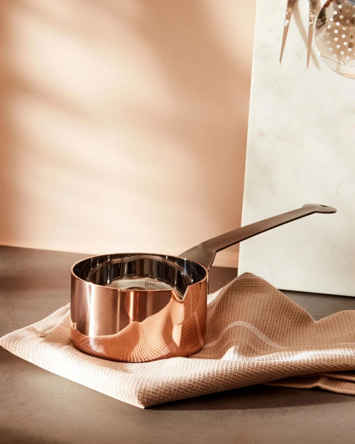 Alessi 90105/14 La Cintura di Orione Casseruola a manico lungo o russa Richard Sapper | Casseruola a manico lungo o russa in acciaio inossidabile 18/10 e rame