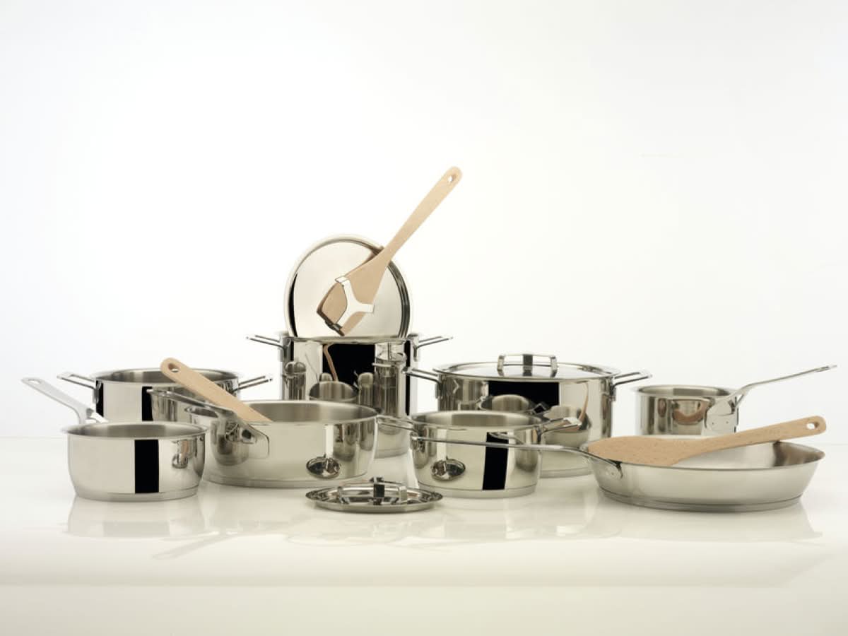Alessi AJM100S9 Pots&Pans Set di pentole Jasper Morrison | Set di pentole composto in acciaio inossidabile 18/10. Fondo in acciaio magnetico adatto anche alla cottura a induzione