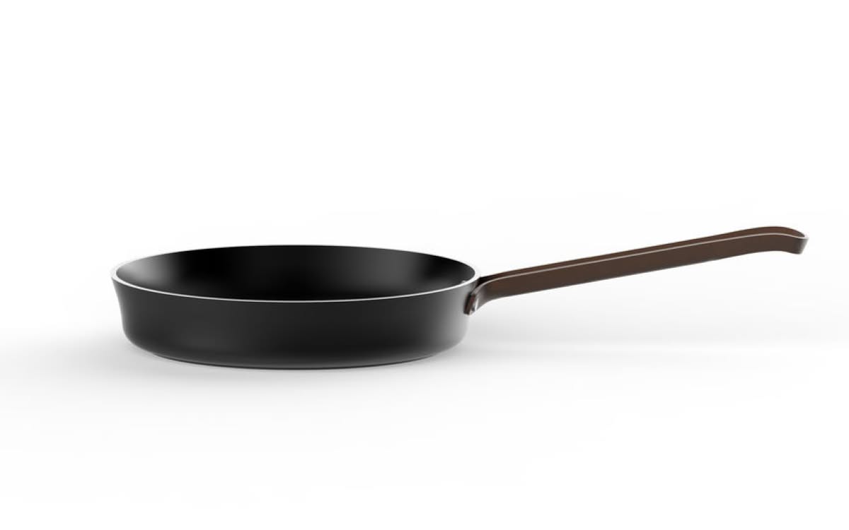 Alessi PU113/24 B Edo Padella a manico lungo Patricia Urquiola | Padella in alluminio con rivestimento antiaderente, nero, manico in acciaio inox 18/10 con rivestimento in PVD, marrone con fondo adatto anche alla cottura a induzione