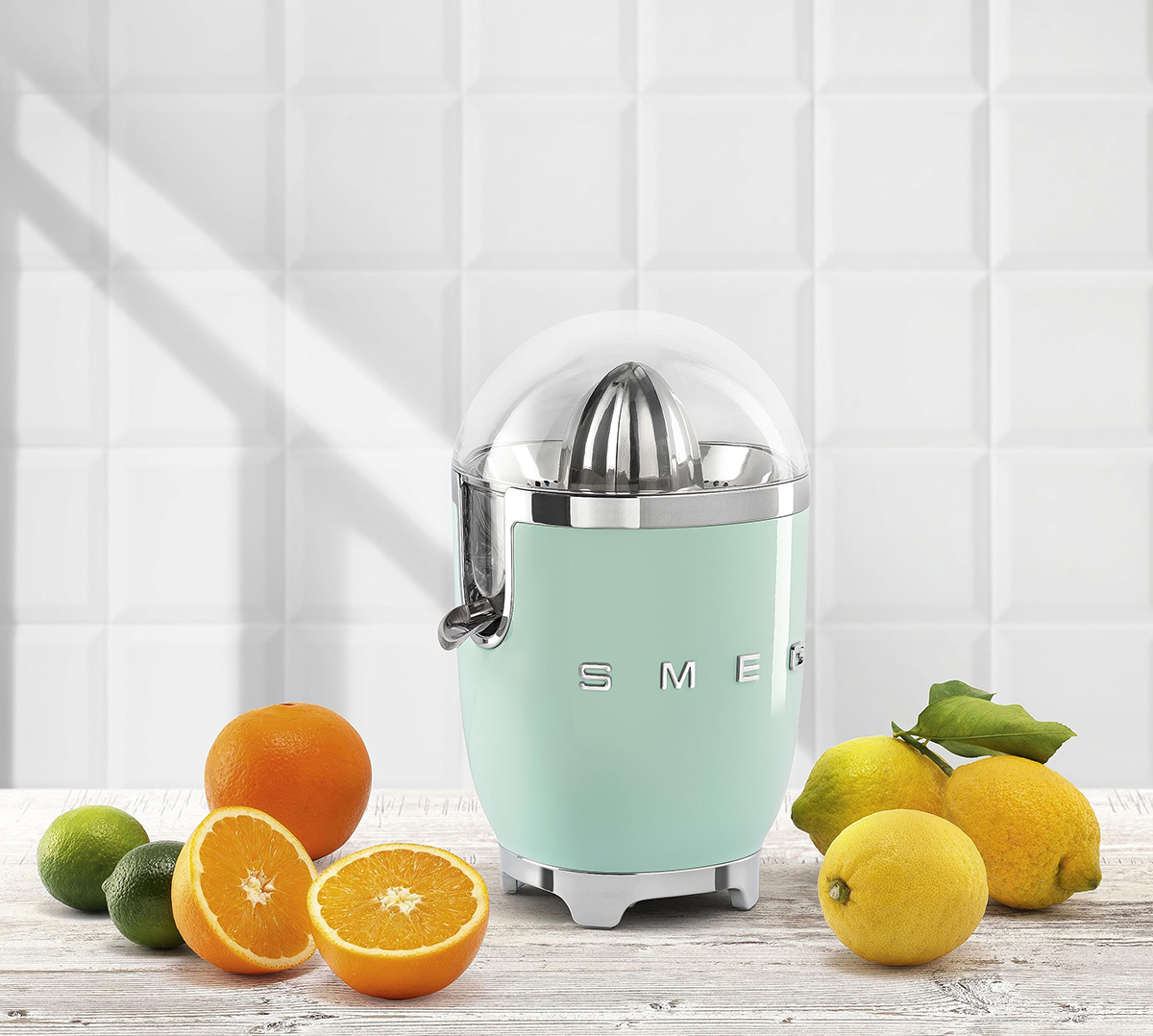 Spremiagrumi Smeg CJF11PGEU Verde pastello lucido | Elettrodomestici design, spremiagrumi elettrico, acciaio inox retrò, estetica 50's Style, vintage, colazione