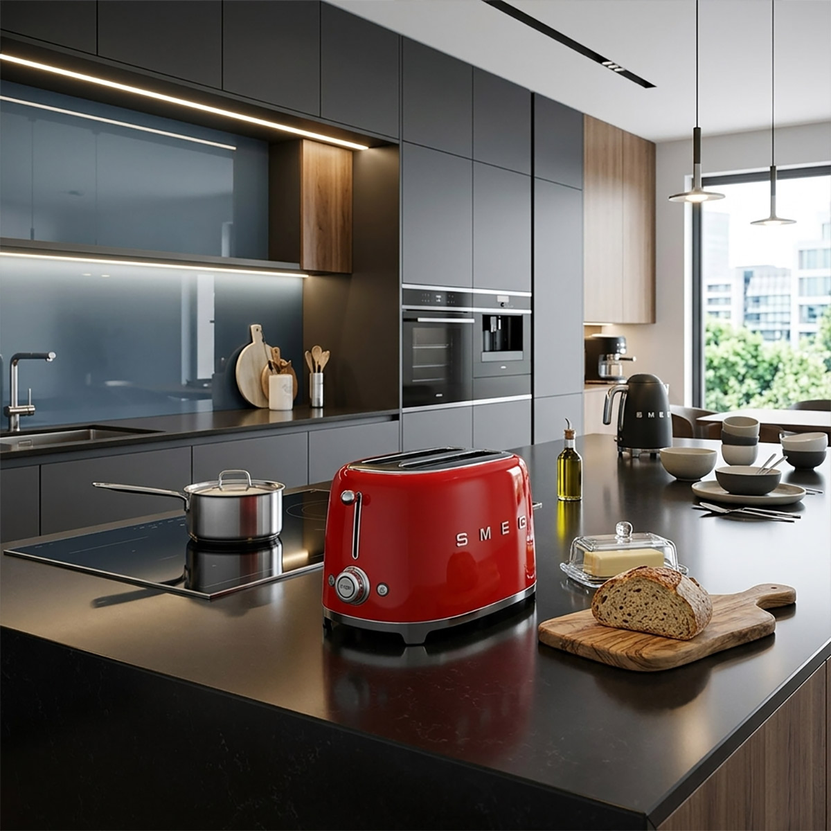 Tostapane 2x4 fette Smeg TSF02RDEU Rosso | Elettrodomestici design, acciaio inox retrò, estetica 50's Style, vintage