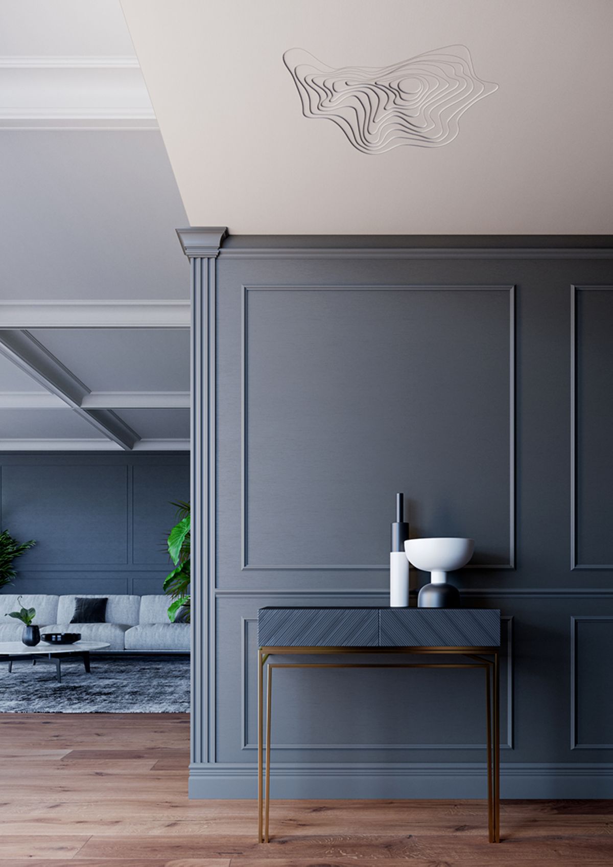 Cima 5516A Rosone decorativo di 9010 novantadieci® è il rosone di design in CRISTALY®, una scultura che nel suo design di isoipse richiama e rende omaggio al Monte Grappa. Monte Grappa: principale cima dell’omonimo massiccio delle prealpi Venete, alle cui pendici ha nascita e sede 9010. Handmade in Italy. Massima espressione di arte e design dove l’eleganza senza tempo, che rimanda al Medio Oriente, al Barocco e al Neo Classico, fa del rosone in gesso la massima espressione dell’arte decorativa. Materia viva ,soffitto unico, Un segno semplice ed efficace, in grado di modellare e plasmare il soffitto e le pareti come fossero materia viva. È da questi principi che nasce la serie di rosoni sviluppata per 9010, la volontà di riportare alla luce un elemento architettonico risalente ai tempi antichi in una veste contemporanea.