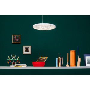 Artemide El Poris 80 lampada a sospensione è la lampada a sospensione moderna, grafica e rigorosa, ma anche davvero spettacolare e scultorea. Introdotta nel 2021, è ora disponibile anche in una versione più piccola, perfetta non solo per i grandi spazi ma anche per applicazioni in ambienti con altezze meno imponenti. In entrambe le versioni, una grande struttura elementare e geometrica presenta lampadine alloggiate nei tradizionali attacchi E27, lasciando piena libertà di scelta sulle sorgenti da utilizzare. Tubi d'acciaio calandrati di diametro decrescente sono uniti da quattro supporti verticali. La semplicità è immediatamente evidente e rivela un know-how progettuale e produttivo in grado di risolvere la complessità in elementi e dettagli che scompaiono nella struttura principale.