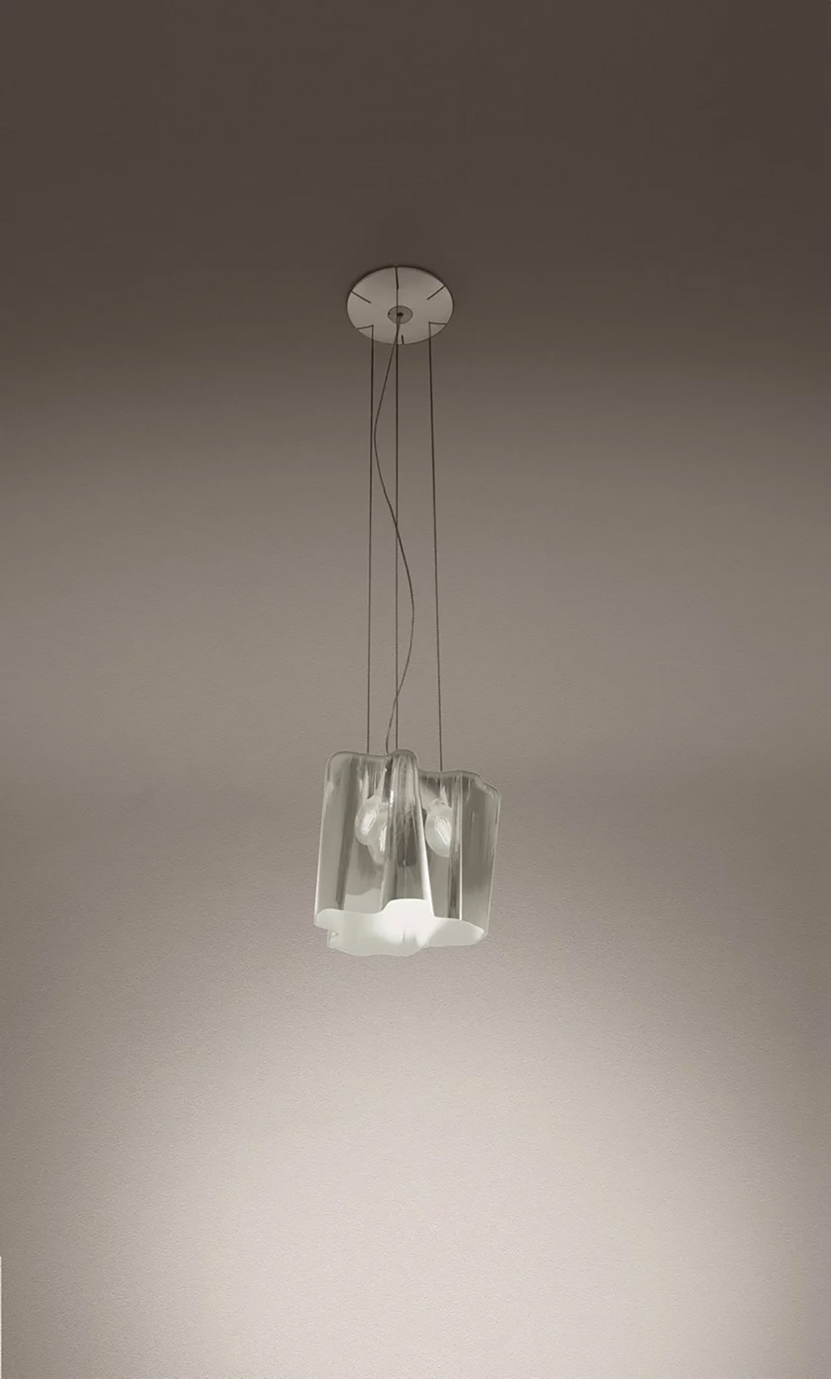Artemide Logico lampada a sospensione è la lampada a sospensione con struttura in alluminio e diffusore in vetro soffiato. Le pieghe della silhouette le conferiscono un connotato di leggerezza come fosse mossa dal vento ed un carattere indubbiamente orginale.