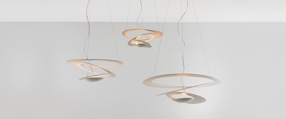 Artemide Pirce lampada a sospensione è la lampada a sospensione dal design pluripremiato ed uno dei piu venduti da Artemide. Originariamente rilasciata in versione alogena, la sua sorgente luminosa è stata ripensata per incorporare un LED di alta qualità ed efficienza energetica. Pirce non è solo un'elegante lampada, ma anche una decorazione seducente con un forte senso di presenza sia accesa che spenta. Il suo disco sottile si fonde dolcemente in vortici fluenti che scorrono a spirale verso il basso per creare effetti di luce seducenti.