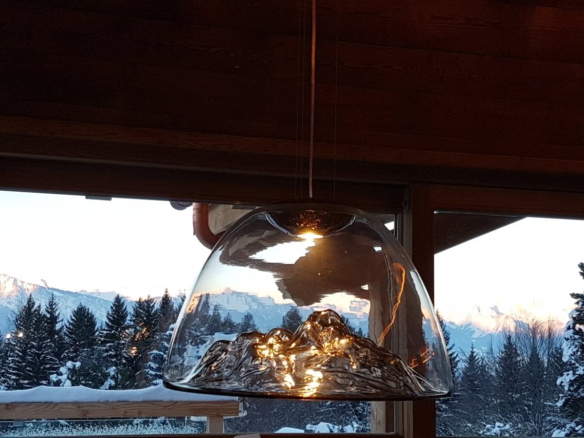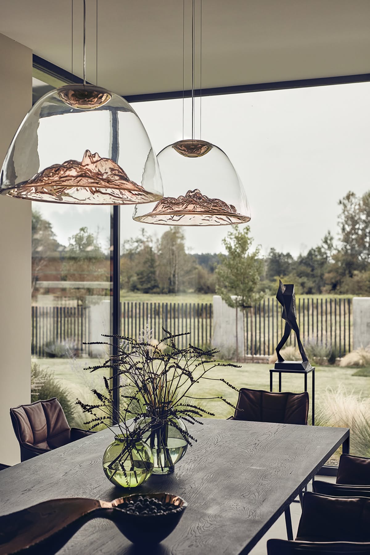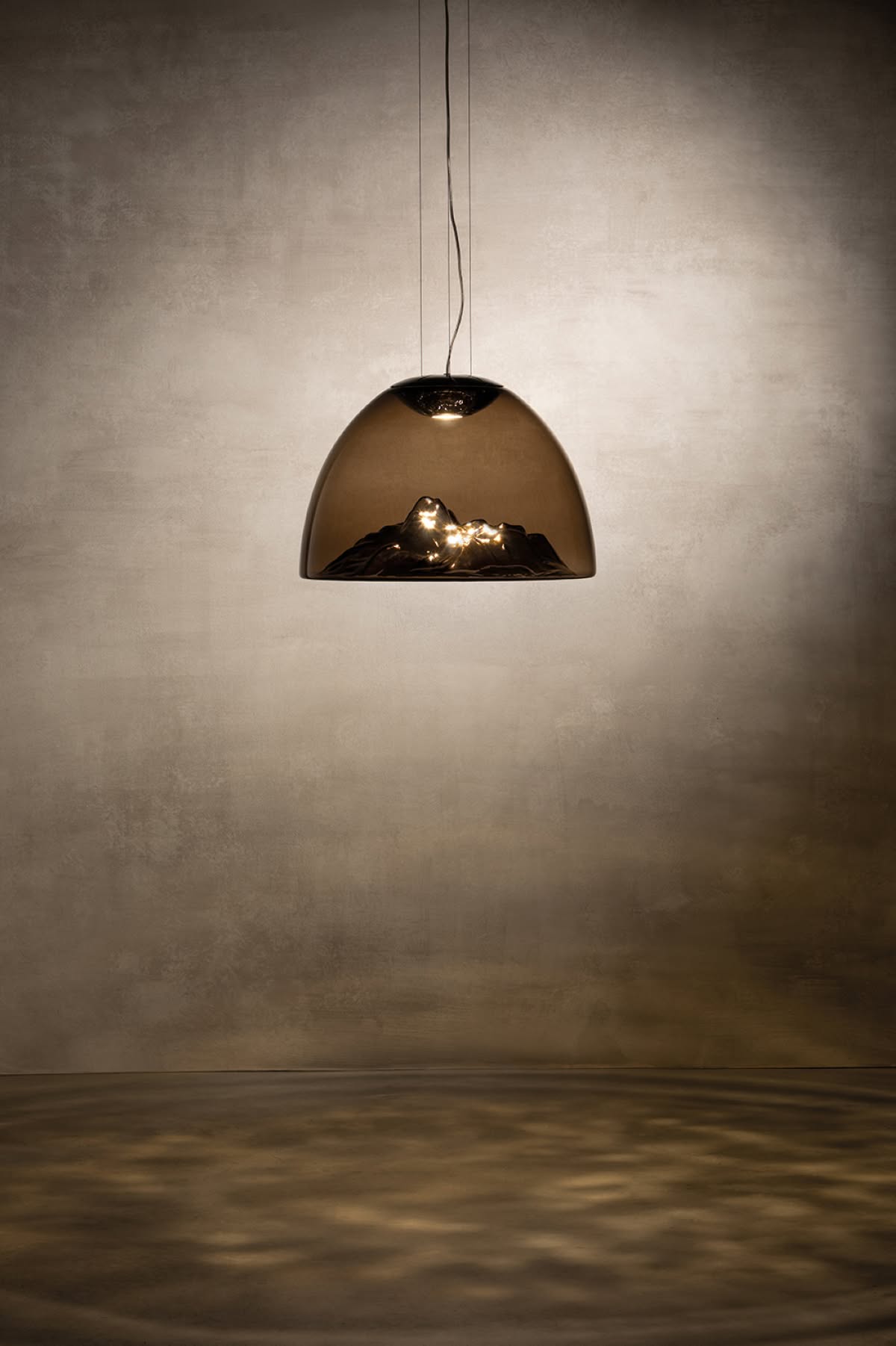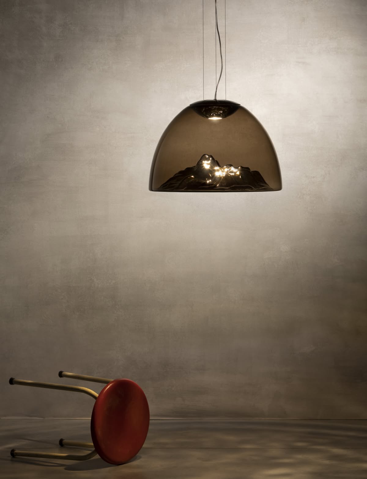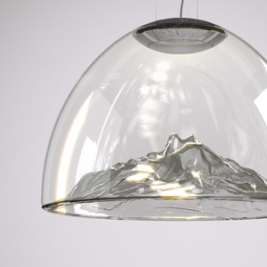 Mountain View Lampada a sospensione è la lampada a sospensione che racconta la meraviglia di una montagna racchiusa in una campana trasparente. Con maestria realizzativa e sapienza artigianale, il vetro soffiato si modella in una personalità preziosa e raffinata. Mountain View è la lampada vincitrice del premio “Interior Design Magazine Best of Year Award 2015” e “Best of the Year award 2016”, nella categoria Illuminazione, della rivista Elle Decoration Russia.