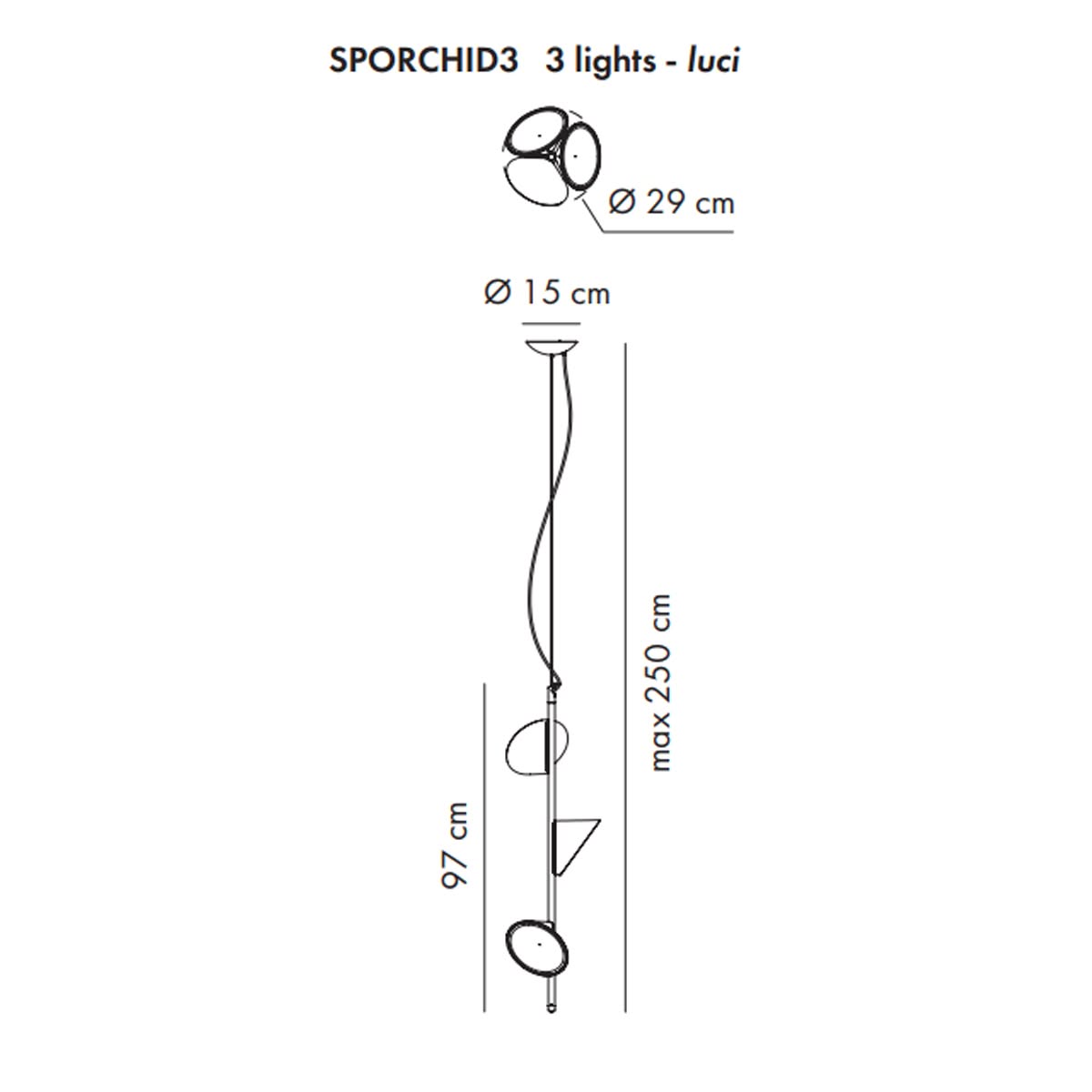 Fonte Luminosa: LED (led driver incluso) - 3 luci 3 X 15W 2700K: 3 X 1237 lm 3000K: 3 X 1375 lm - Dimmable IGBT-TRIAC IP20 Fascio diffuso 220-240VAC CRI 90