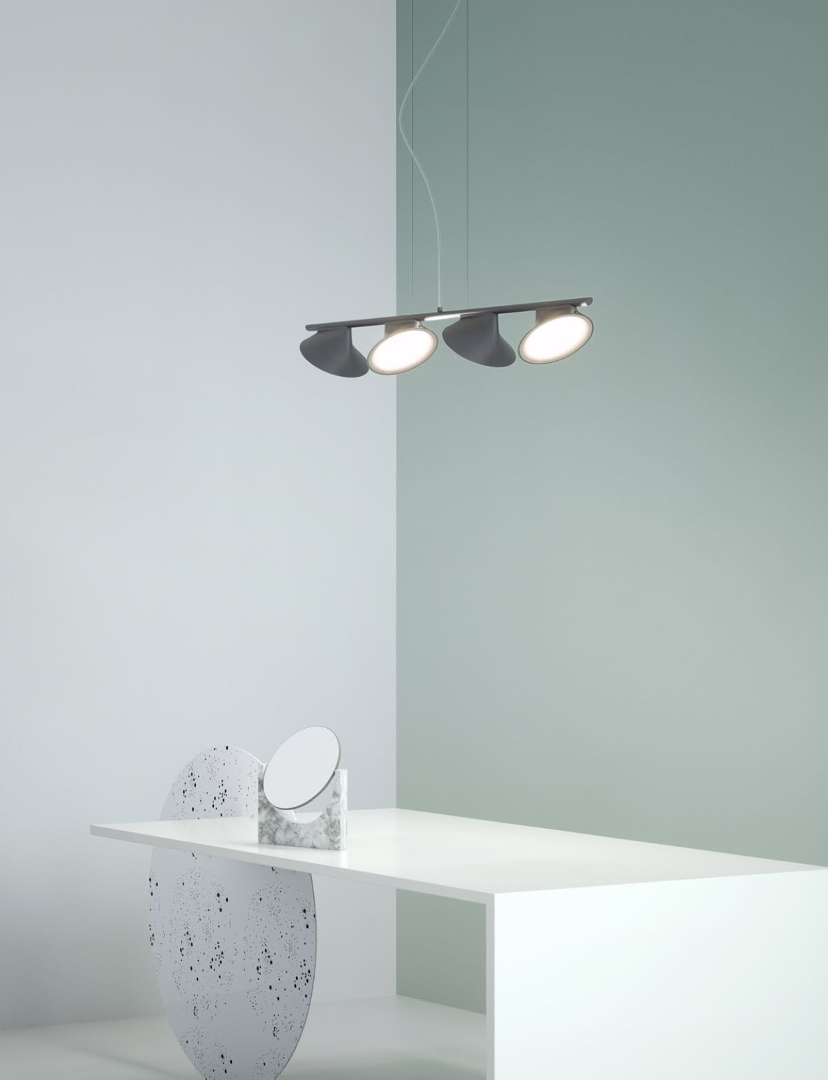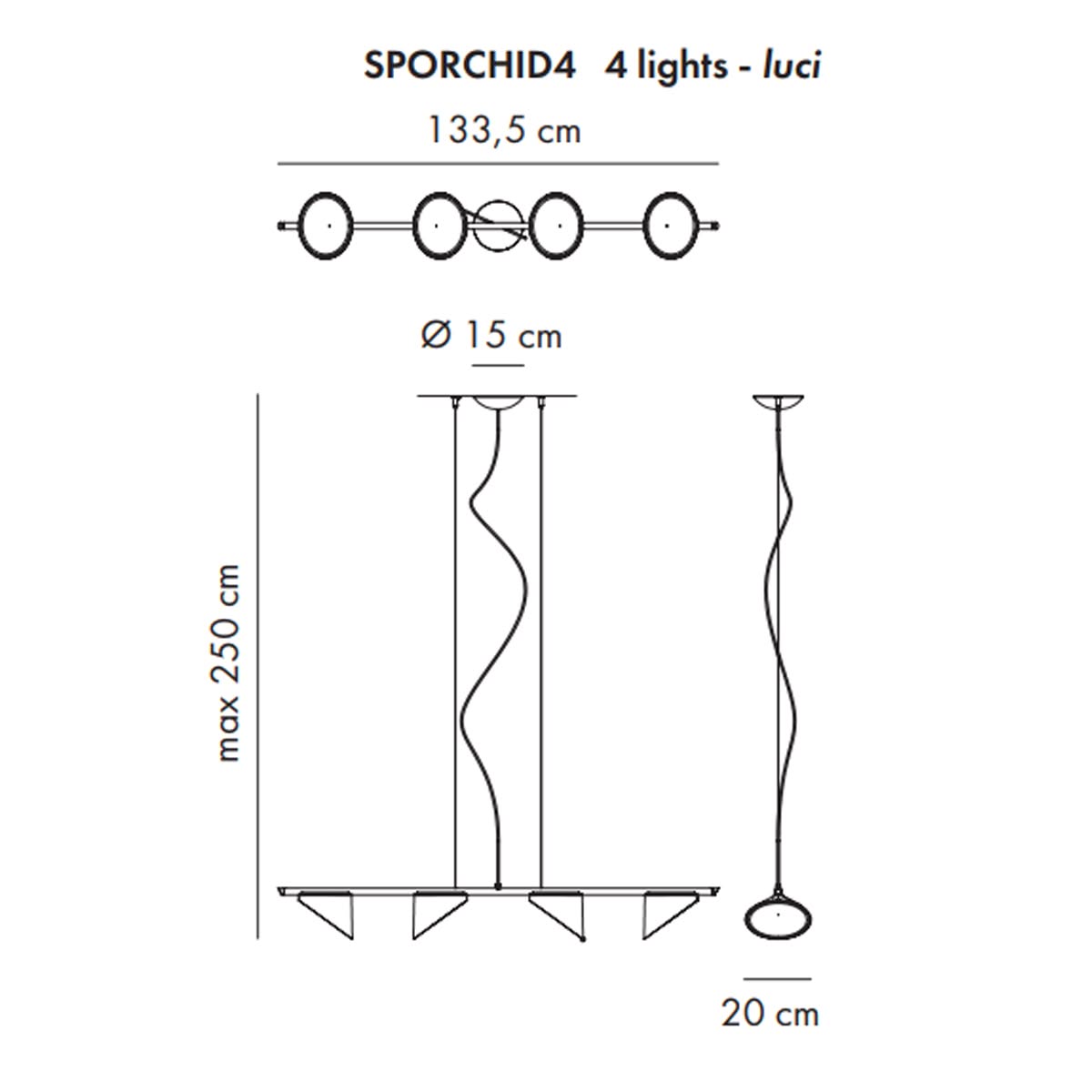 Orchid 4 luci Orizzontale Lampada a sospensione è la lampada a sospensione in alluminio e acciaio, omaggio all’incanto della natura, con i suoi splendidi steli e boccioli che si trasformano in pura espressione di design. I fasci luminosi, diretti come raggi di sole, si combinano con un intenso bagliore diffuso, caratterizzando ogni ambiente con grazia e raffinatezza. La collezione Orchid comprende sospensioni, applique, plafoniere, lampade da terra e da tavolo, offrendo soluzioni eleganti per illuminare con stile e armonia ogni spazio.
