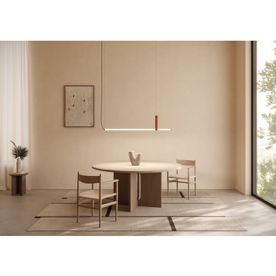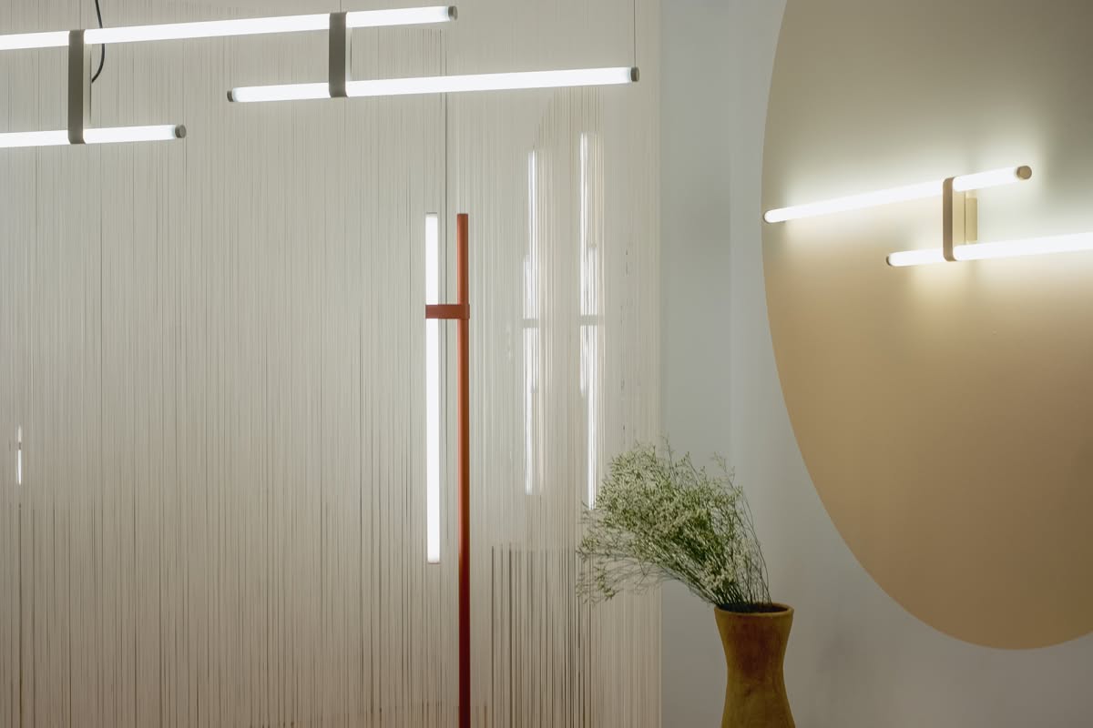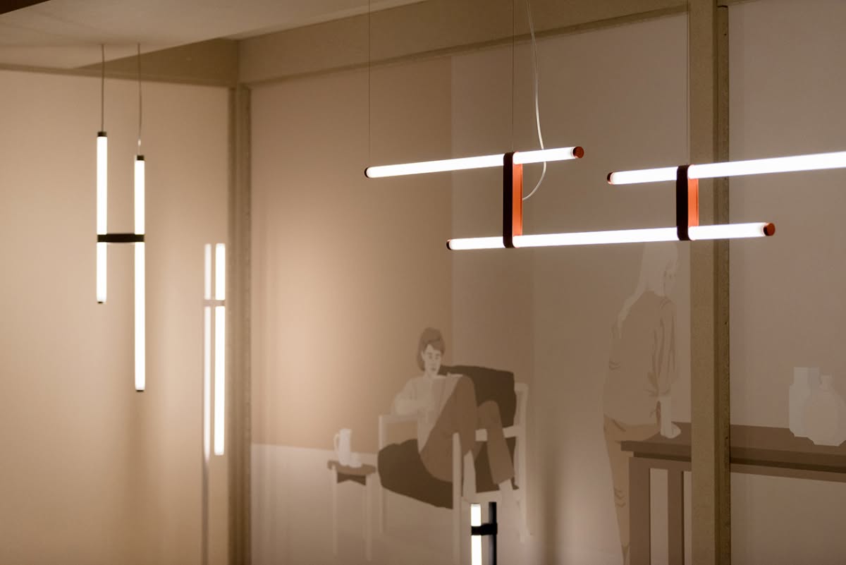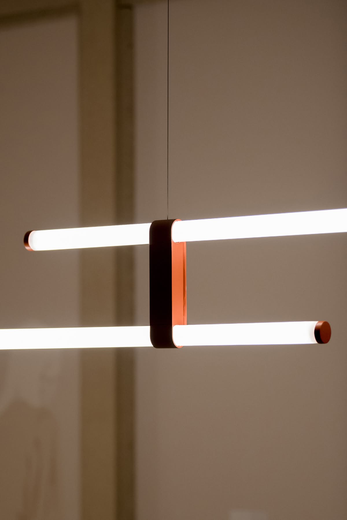 Paralela sospensione tripla 199 Lampada a sospensione è la lampada a sospensione della collezione omonima con sistema modulare disegnato dallo studio spagnolo Nahtrang, nasce dalla volontà di dare forma alla luce, affinché essa stessa si concretizzi in un elemento luminoso decorativo. Da qui l’idea di creare dei cilindri luminosi, in vetro borosilicato connessi tra loro da elementi in Nylon PA12, che possono svilupparsi nello spazio in modo ordinato per gravità sviluppando un dialogo visivo che diventa una sinfonia di luce. Si tratta di una nuova famiglia prodotto completa, disponibile in versione sospesa orizzontale e verticale, da tavolo, da terra e da muro, con misure differenti e cinque nuance.