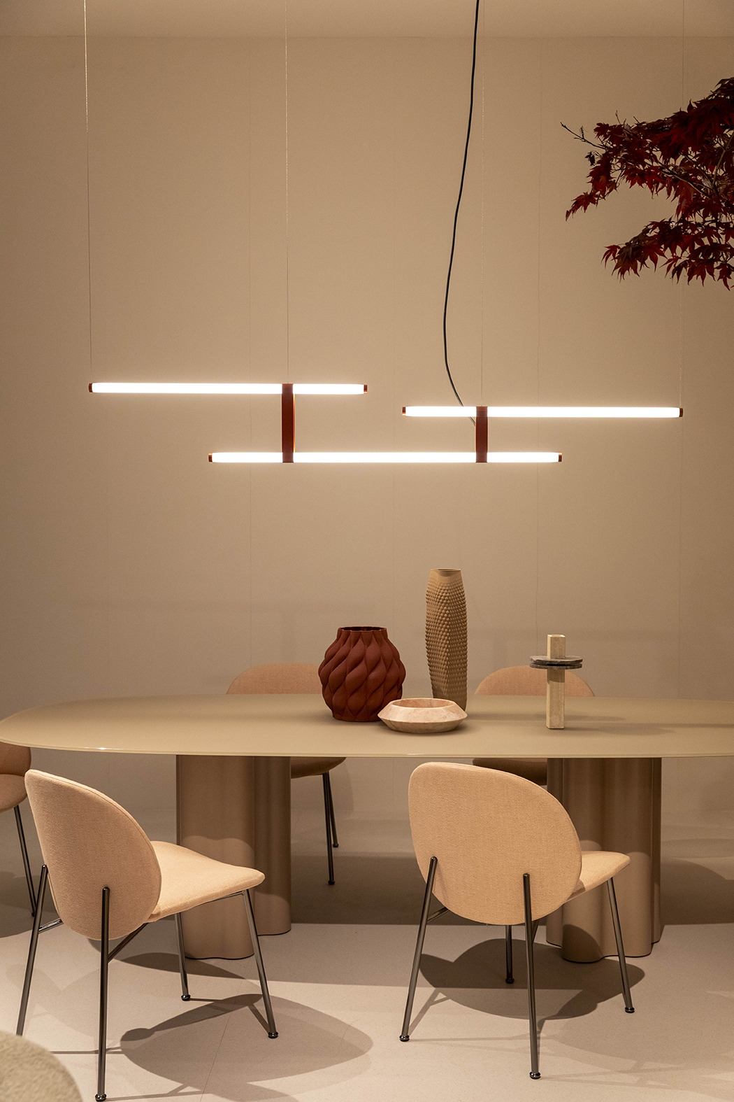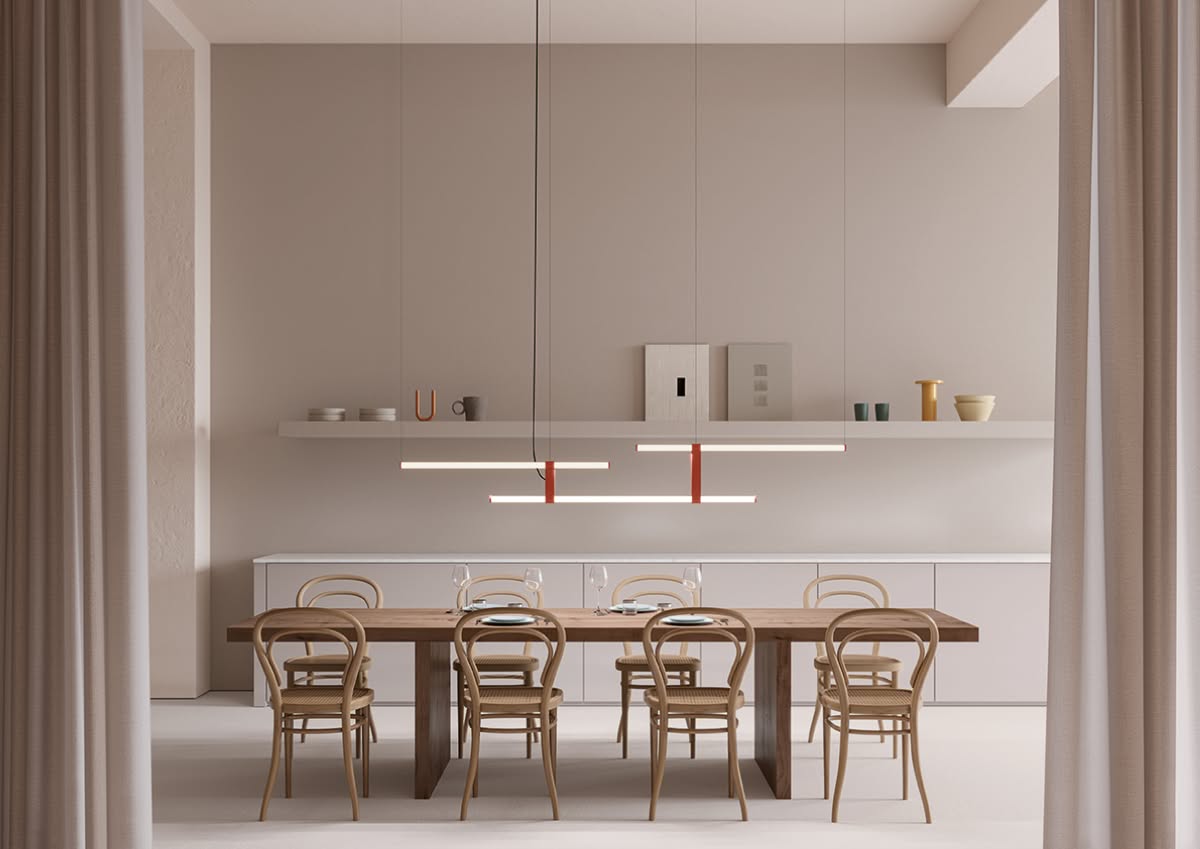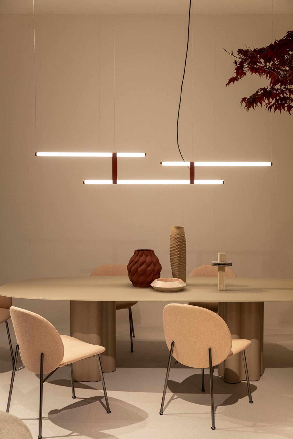 Paralela sospensione tripla 199 Lampada a sospensione è la lampada a sospensione della collezione omonima con sistema modulare disegnato dallo studio spagnolo Nahtrang, nasce dalla volontà di dare forma alla luce, affinché essa stessa si concretizzi in un elemento luminoso decorativo. Da qui l’idea di creare dei cilindri luminosi, in vetro borosilicato connessi tra loro da elementi in Nylon PA12, che possono svilupparsi nello spazio in modo ordinato per gravità sviluppando un dialogo visivo che diventa una sinfonia di luce. Si tratta di una nuova famiglia prodotto completa, disponibile in versione sospesa orizzontale e verticale, da tavolo, da terra e da muro, con misure differenti e cinque nuance.