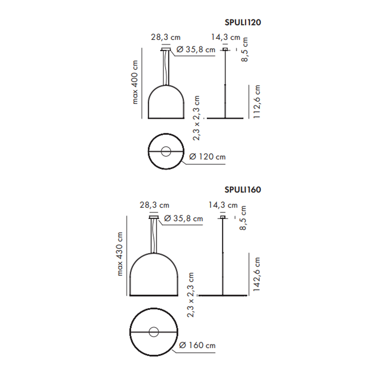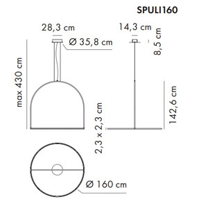 SPULI160: Ø 160 cm 125W 2700K: 8122 lm 3000K: 9025 lm