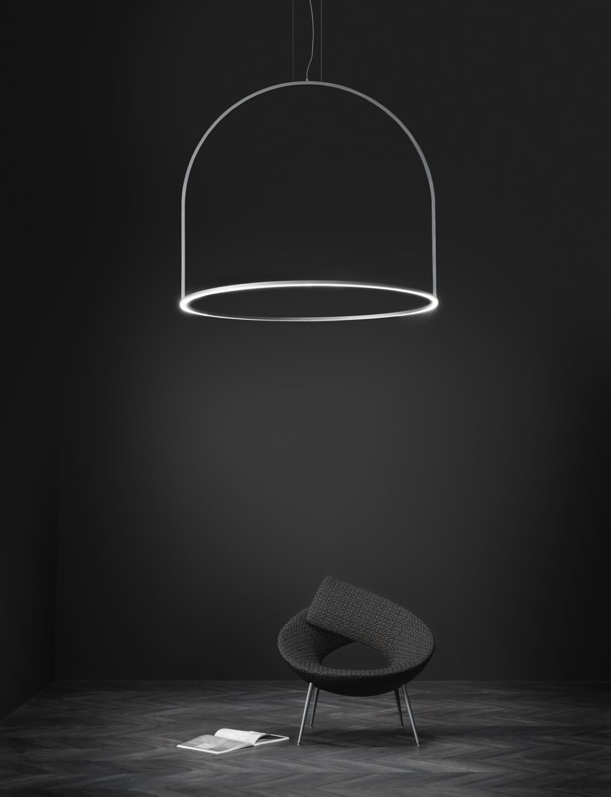 U-Light Campana Lampada a sospensione è la lampada da soffitto dal disegno grafico essenziale e luce intensa. U-light esprime potenza ed efficienza luminosa enfatizzando l’essenza estetica, in un connubio armonico che sa lasciare un forte segno nello spazio. Fortunata e iconica, la collezione U-Light di Timo Ripatti è un gioco grafico di elementi circolari in alluminio, minimal e leggeri, che riempiono soffitti e pareti. Portavoce di maestria e avanguardia tecnica, tutti i modelli sono dotati di fonte luminosa a LED integrata nella struttura che diffonde una morbida luce bianca dimmerabile. Oggi, una nuova generosa dimensione – 180 cm di diametro – entra a far parte della famiglia U-Light, dimostrandosi una soluzione dal forte impatto scenico in grado di caratterizzare con forma e luce gli ambienti contract e hospitality. U- light ha ricevuto nel 2016 il premio “NYCxDESIGN Award”, nella categoria Illuminazione, dalla rivista Interior Design, in collaborazione con l’ICFF. Un’ulteriore conferma della vocazione ed expertise di Axolight nell’ideare soluzioni big-size per il mondo della progettazione. Versione fonoassorbente su richiesta.