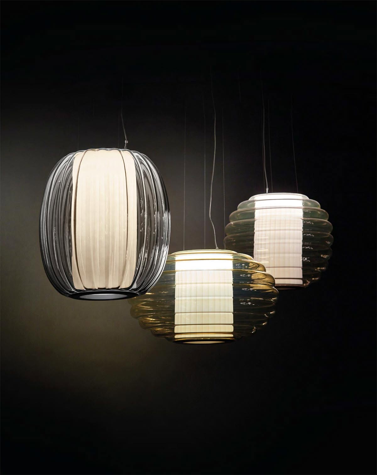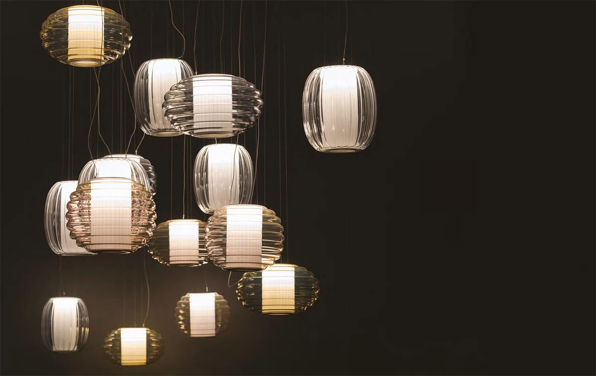 "Abbiamo voluto unire due elementi artigianali, il diffusore bianco effetto plissé e la bolla di vetro soffiato, per creare un dialogo tra tradizione e innovazione. L'idea era di far emergere la magia di due materiali classici, che si riscoprono e si trasformano insieme, dando vita a una luce poetica, capace di emozionare e sorprendere." Gabriele Chiave, Co-founder e Creative Director di Controvento.