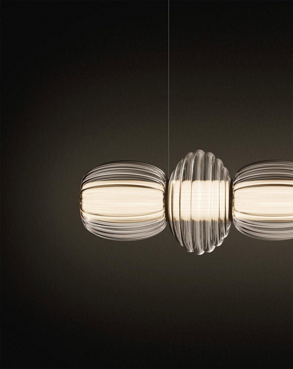 "Abbiamo voluto unire due elementi artigianali, il diffusore bianco effetto plissé e la bolla di vetro soffiato, per creare un dialogo tra tradizione e innovazione. L'idea era di far emergere la magia di due materiali classici, che si riscoprono e si trasformano insieme, dando vita a una luce poetica, capace di emozionare e sorprendere." Gabriele Chiave, Co-founder e Creative Director di Controvento.