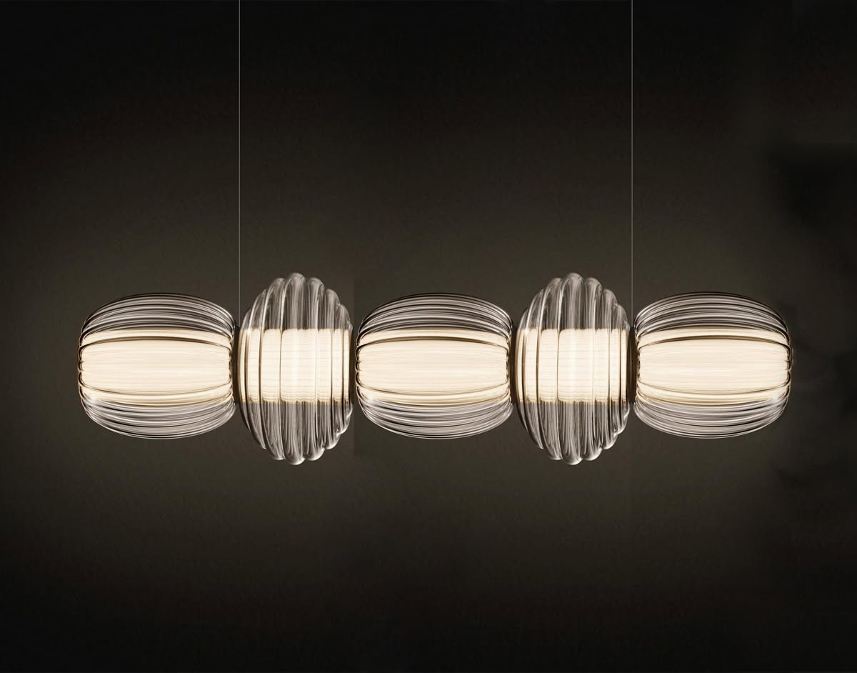 "Abbiamo voluto unire due elementi artigianali, il diffusore bianco effetto plissé e la bolla di vetro soffiato, per creare un dialogo tra tradizione e innovazione. L'idea era di far emergere la magia di due materiali classici, che si riscoprono e si trasformano insieme, dando vita a una luce poetica, capace di emozionare e sorprendere." Gabriele Chiave, Co-founder e Creative Director di Controvento.