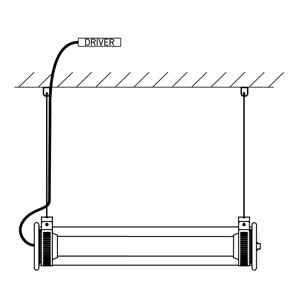 NOTA: La lampada è dotata di driver remoto. Esistono due soluzioni: scatola di connessione, accessorio essenziale per l'uso della lampada in ambienti esterni e in bagno (protezione dall'umidità), dove per l'uso in ambienti interni, la scatola di collegamento consente di nascondere esteticamente il cablaggio oppure incasso nella parete divisoria.