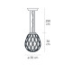 Pinecone è una lampada da sospensione e da appoggio, caratterizzata da un diffusore prodotto mediante l’antica tecnica del vetro soffiato ingabbiato: il maestro vetraio soffia a bocca la bolla vitrea entro una gabbia metallica, che ne contiene la naturale espansione solo in parte. In questo modo il manufatto finale viene in parte trattenuto dalla gabbia e in parte vi sfugge, creando un gioco di tensione che genera un oggetto sospeso nell’atto di fuoriuscire dal proprio vincolo; la gabbia viene ulteriormente impreziosita da un trattamento galvanico che ne esalta l’aspetto rendendola lucida e brillante. La versione trasparente, in particolare, permette all’osservatore di leggere un doppio livello di struttura, moltiplicando l’effetto scenografico, e l’intreccio del cesto metallico proietta sulle superfici circostanti un caleidoscopico gioco d’ombre. Al contrario, la versione bianca segue delicatamente la gabbia e ne sottolinea le geometrie generando una luce diffusa elegante e piacevole. Si tratta di un apparecchio luminoso altamente suggestivo e di forte impatto sia da spento che da acceso.