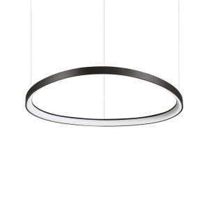 Gemini Sp D105 On-off Nero Lampada a sospensione di Ideal Lux è una lampada di design con rosone e paralume in metallo verniciato a polveri o placcato. Diffusore in policarbonato opale. Cavo in pvc trasparente. Disponibile nelle finiture bianco, nero o ottone spazzolato. Modelli con diametro 810 mm e 610 mm disponibili anche in versione dimmerabile DALI/Push.
