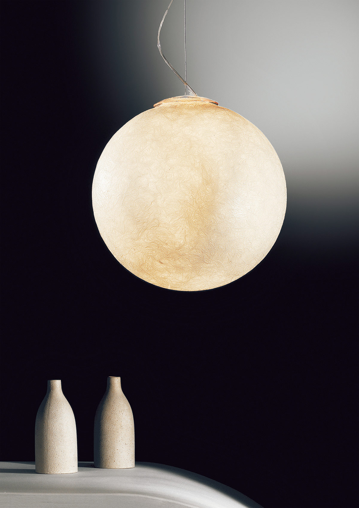 Luna 25 sospensione di In-es.artdesign è la lampada a sospensione appartenente alla collezione Luna che trae ispirazione dalla luna, con un design che racchiude sfumature e sensazioni romantiche. La Nebulite®, materiale con il quale è realizzata, trasforma le lampade in un catalizzatore di luce materica e morbida, riproducendo la superficie lunare.