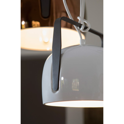 Bag SE154DR INT lampada a sospensione di Karman è la lampada a sospensione con diffusore in ceramica bronzo lucida con texture e manico in metallo verniciato grigio. Femminile, personale, irrinunciabile. Bag incarna tutta la versatilità di una borsa: una calotta dalla forma morbida e accogliente, abbracciata da un elemento in metallo, “il manico”, che consente sia l’ancoraggio a soffitto che l’appoggio a terra o sul tavolo; una fonte luminosa dal carattere ogni volta diverso – luce diretta o più da compagnia – anche in relazione alla finitura, al colore o al materiale.