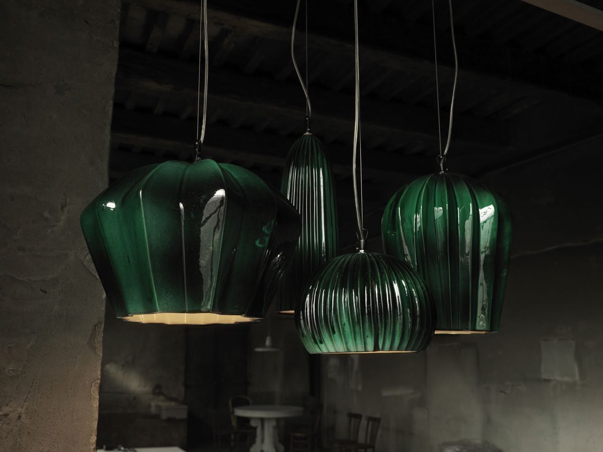 Sahara Ø 35 Lampada a sospensione di Karman è la lampada a sospensione presentata inizialmente nella finitura bianco lucido e verde intenso lucido che ha subìto un restyling vedendo affiancati il grigio opaco ed il verde salvia, tonalità pastello eleganti, dolci e poco intrusive, pertanto adatte ad ogni ambiente della casa. Una nuova veste, dunque, per una collezione che mantiene inalterata la raffinata freschezza del tratto, capace di evocare contesti tipicamente mediterranei.