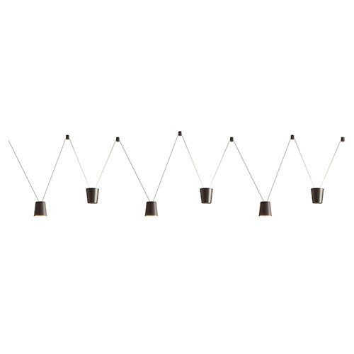 Sling lampada a sospensione di KDLN è una lampada a sospensione dove un unico cavo unipolare trasferisce la corrente e supporta sorgenti luminose multiple. Come una fionda all’aria aperta, questo cavo proietta installazioni di luce, dando vita a geometrie spettacolari e configurazioni sempre inaspettate. Direttamente dalla nostra infanzia, Sling gioca con semplicità e infinite variabili.
