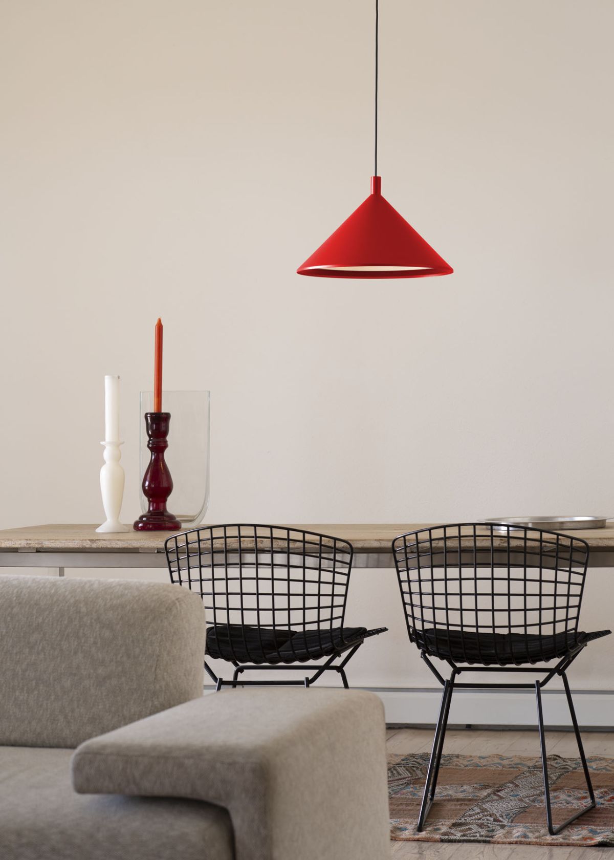 Cono Ø 30 lampada a sospensione di Martinelli Luce è la lampada a sospensione raffinata, il cui segno particolare è il tratto semplice ed essenziale. Modello a sospensione a luce diretta è particolarmente adatta in ambiente domestico o in uffici o ristoranti per illuminare precise porzioni di tavolo. Lampada a sospensione a luce diretta, in alluminio verniciato. Riflettore interno in alluminio verniciato nel colore bianco. Per lampadina a Led. Disponibile in due dimensioni.