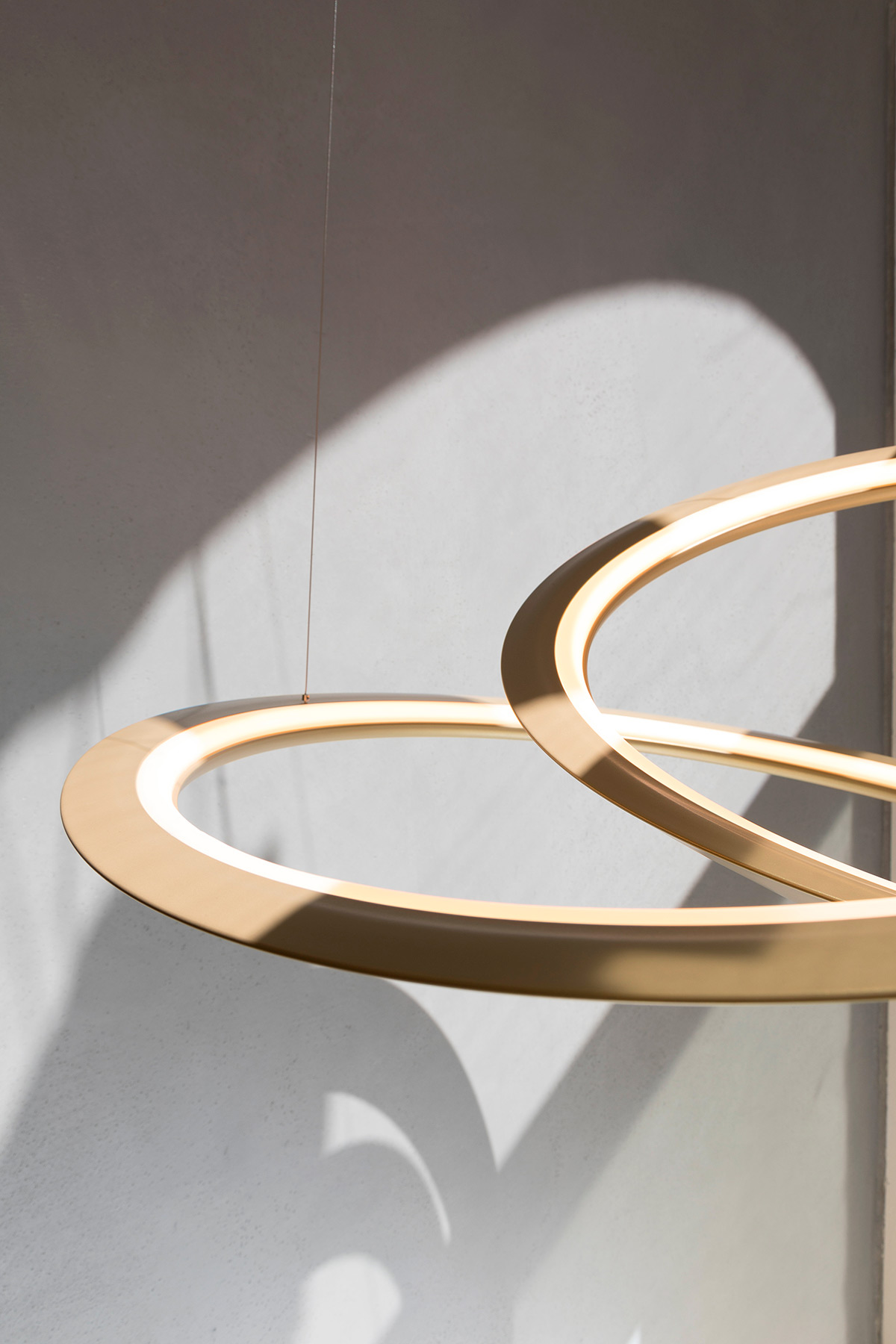 Kepler lampada a sospensione di Nemo Lighting è la lampada di design disponibili in tre dimensioni Kepler, Kepler Minor e Kepler Petite. La struttura è un estruso di alluminio verniciato, la cui linea continua è realizzata attraverso un processo di lavorazione tridimensionale ingegnerizzato da Nemo e disegnata sulla base del principio geometrico del nastro di Moebius. Disponibile nelle versioni “up” con fonte luminosa verso l’alto e versioni “down” al contrario verso il basso nelle finiture verniciate opache bianco, nero e oro.