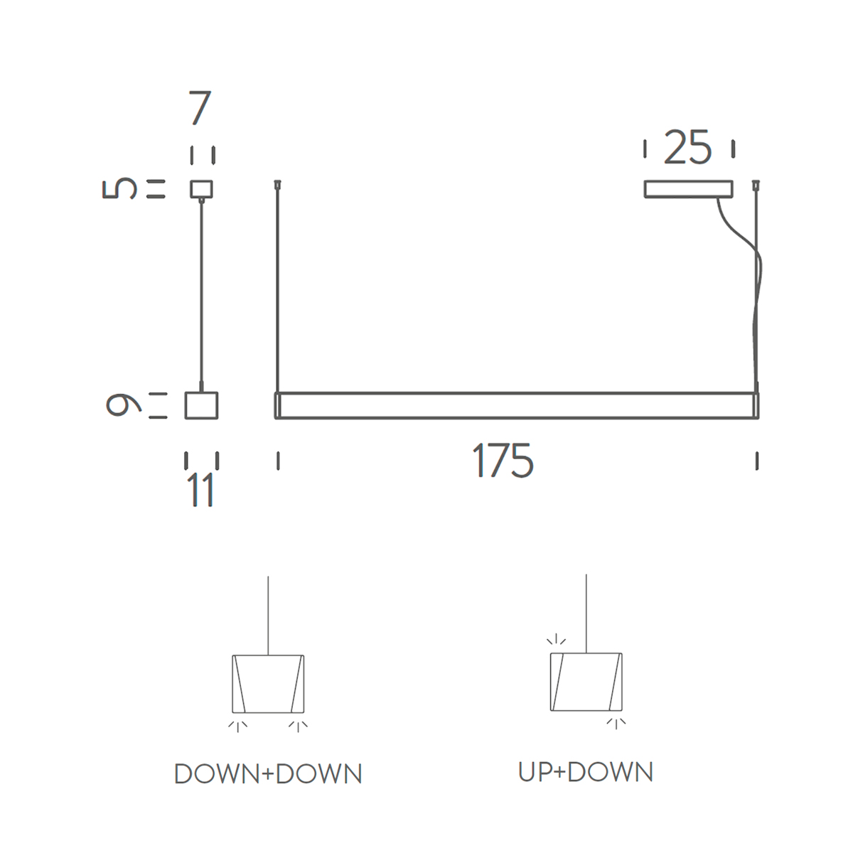 Note: CRI 85, IP20, lunghezza cavo metallico 3m, lunghezza cavo elettrico 5m, bianco RAL 9003, nero RAL 9005, Versione TRIAC, DALI e CASAMBI su richiesta, disponibile anche con certificazione ETL
