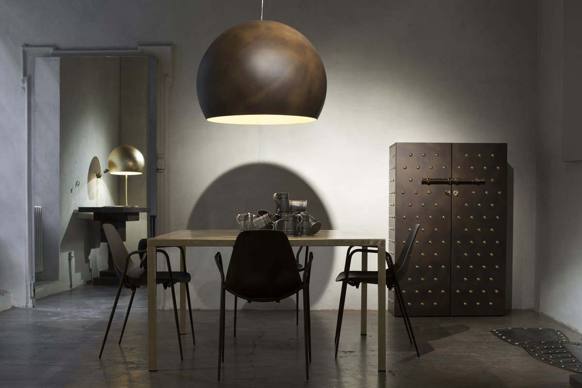 LALampada sospensione Ø 45 è il lampada di design con diffusore in alluminio o acciaio. Quattro misure. Luce diretta. Cablaggio EU, 2,5 m di cavo in acciaio inox con cavo bipolare elettrico trasparente. Finiture diffusore: finitura materica effetto cemento opaco con interno argento, effetto bronzo opaco con interno oro. Foglia oro lucido con interno oro. Corkcrete beige, grigio o tortora con interno verniciato in tinta. Finiture rosone: cromo per diffusore cemento. Oro lucido 24 K per diffusore Corkcrete, bronzo e foglia oro. Unisce tradizione e modernità LAlampada, la lampada a sospensione disegnata da Lapo Ciatti. Un lampada che, come suggerisce il nome, non ha bisogno di molte presentazioni grazie alla sua forma immediatamente riconoscibile. Quella forma sferica che ciascuno di noi immagina pensando appunto a una lampada. Al design minimalista delle forme, si contrappone la ricercatezza delle finiture. LAlampada può infatti essere rivestita da una speciale copertura dall'effetto materico (cemento o bronzo), da una sofisticata foglia oro o, novità 2024, dall'innovativa malta ecologica Corkcrete disponibile in 3 colori (beige, grigio, tortora). L'interno segue la finitura esterna. Una lampada estremamente versatile perché disponibile in varie grandezze (da 20 a 80 cm di diametro) e che quindi si presta a essere inserita in tutti gli ambienti, dai più piccoli a quelli più ampi. Da sola o in composizioni dal forte impatto scenico. Con il cavo in dotazione, lungo e sottile, che si fissa al rosone (sempre coordinato con la finitura) questa sospensione si può utilizzare sia al centro della stanza per l’illuminazione generale sia per mettere in risalto angoli o arredi specifici, come il tavolo da pranzo, la scrivania o la zona relax. L'elevato livello di personalizzazione fa de LAlampada l’ideale per illuminare uffici o spazi aperti al pubblico, così come ogni stanza della casa per cui si cerchi un lampadario efficace nell'illuminazione e interessante dal punto di vista estetico. Accanto alla sospensione, LAlampada è disponibile anche in versione da tavolo.