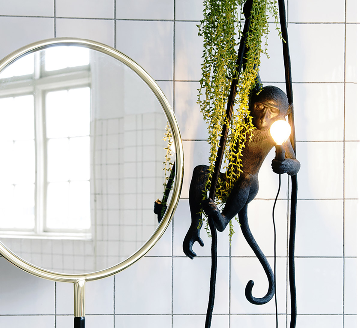 Una famiglia di lampade scimmia simpatica e furtiva, dal forte impatto estetico. Arte, design e mondo animale si fondono tra loro, creando la scenografia perfetta per una casa incantata.