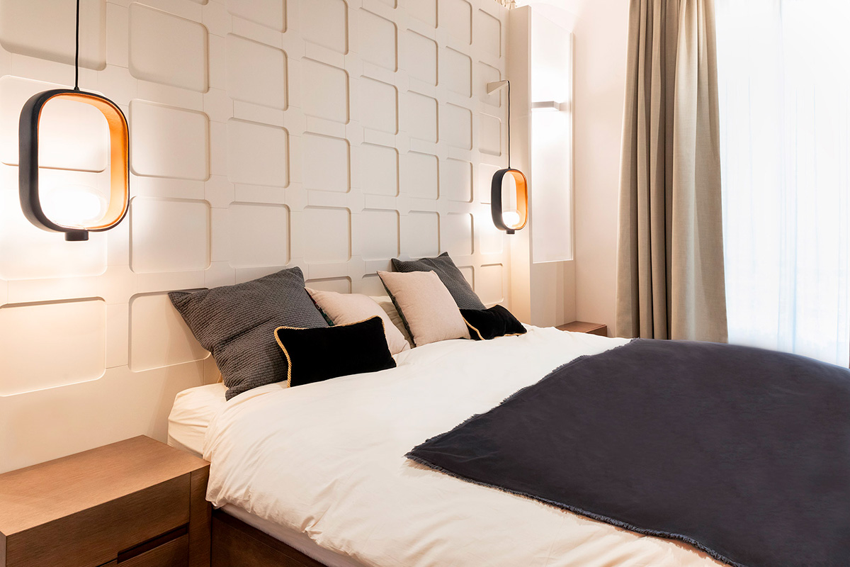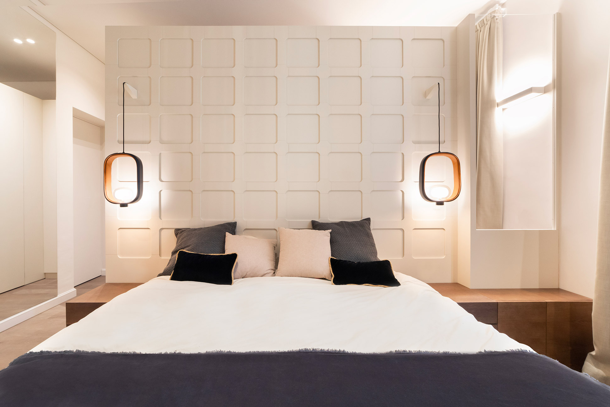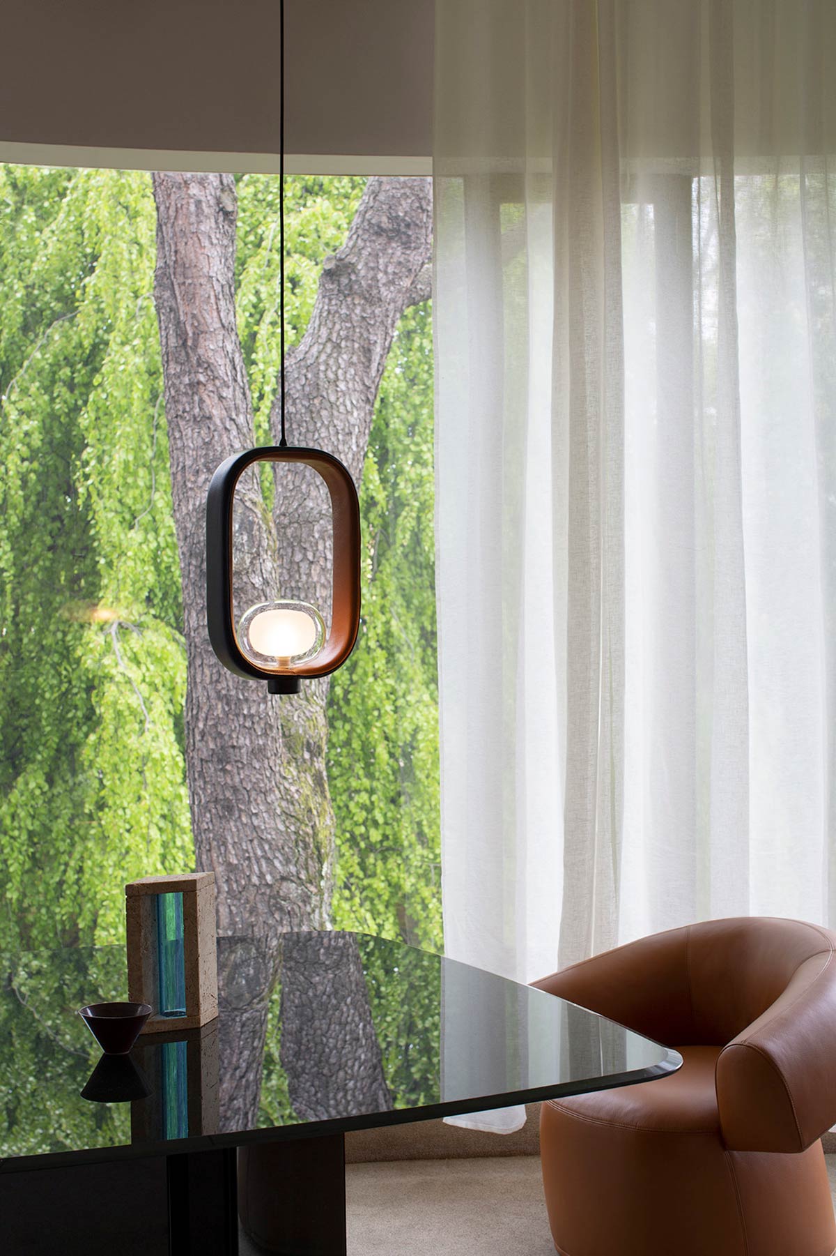 Filipa 555.22 sospensione è la lampada a sospensione appartenente alla collezione di lampade ispirate al tema classico cinese delle lanterne. La particolare struttura bidimensionale è composta da metallo verniciato a polvere all'esterno, mentre all'interno il colore è grigio sabbia. La sorgente luminosa si trova all'interno di un diffusore bifacciale in vetro borosilicato, mentre le sospensioni dispongono di una sorgente di luce LED integrata aggiuntiva per creare a illuminazione diretta verso il basso.