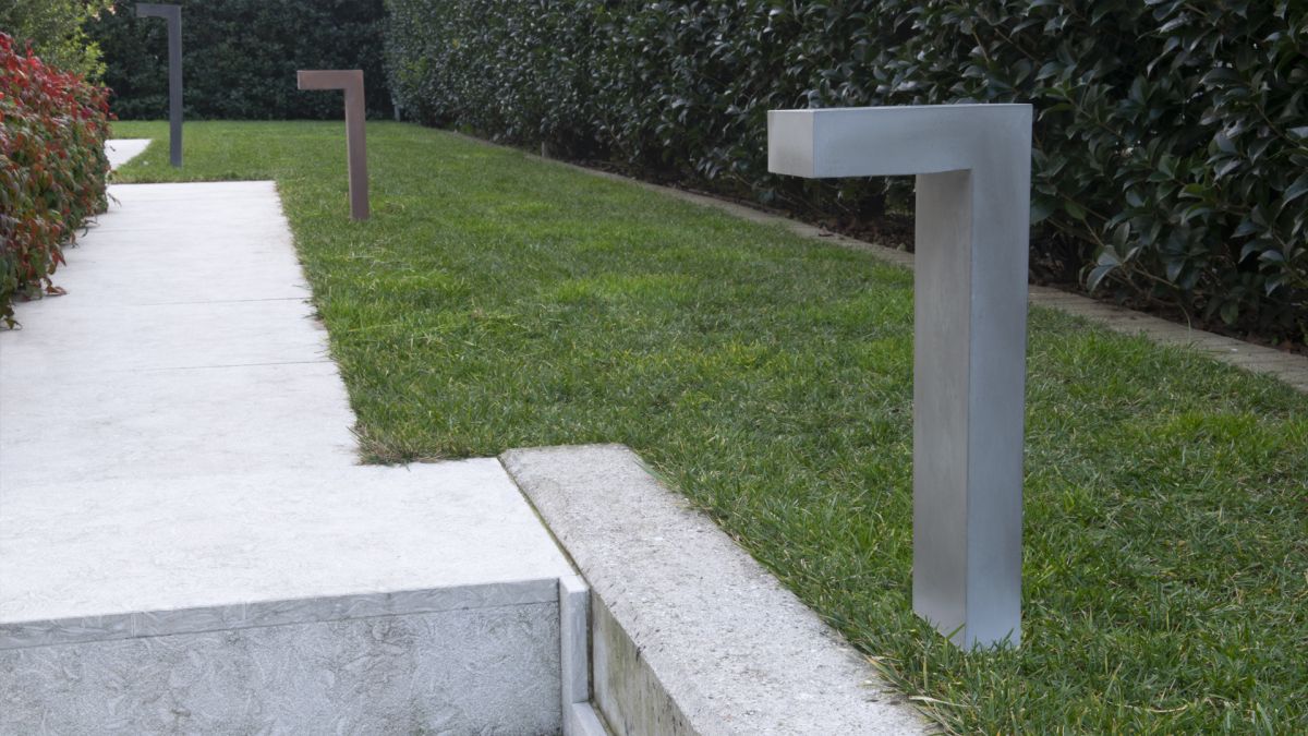 Elle Small 1093B colonnina da esterno di 9010 novantadieci® è la lampada da giardino a colonnina da esterno con parte elettrica a LED in BETALY® con luce diretta verso il basso. Il bollard con sostegno a forma di parallelepipedo e testa rettangolare. Le linee essenziali di ELLE ne integrano armoniosamente la figura all’interno di spazi tra loro anche molto diversi, senza definire l’ambiente ma utilizzando la sola luce per infondere una sensazione di invitante accoglienza. Handmade in Italy. MATERIALI