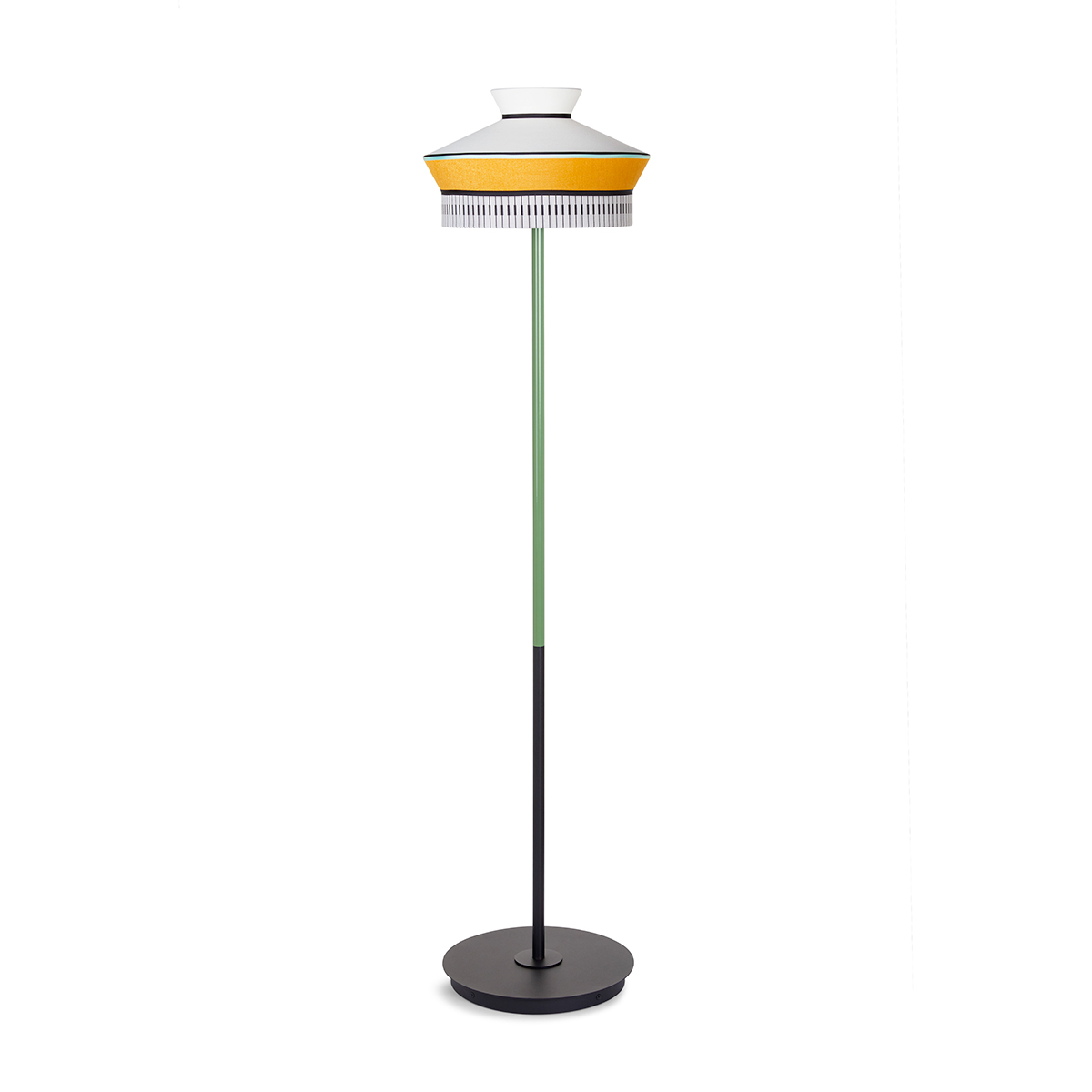 Calypso Martinique Outdoor lampada da terra di Contardi è la lampda da esterno IP65. Il prodotto è disponibile in due versioni: piantana singola con paralume oppure con paralume e tavolino. La sorgente luminosa è posta all’interno di un cilindro di vetro che è sigillato per garantire il grado di protezione IP65. La parte inferiore della struttura è laccata nera come il tavolino, la parte superiore è laccata color verde RAL 6011. Le lampade sono fornite con connettore IP68.