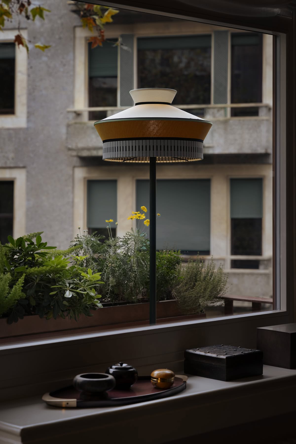 Calypso Martinique Piantana lampada da esterno Contardi | Lampada design da esterno in metallo vetro e tessuto