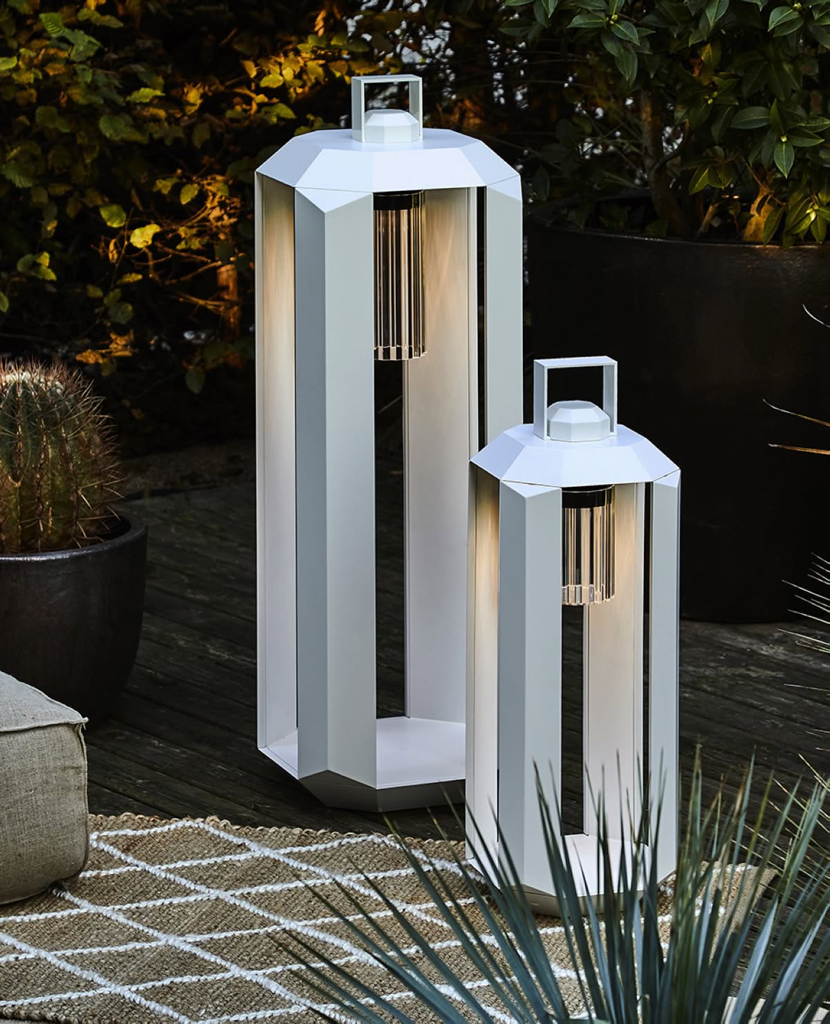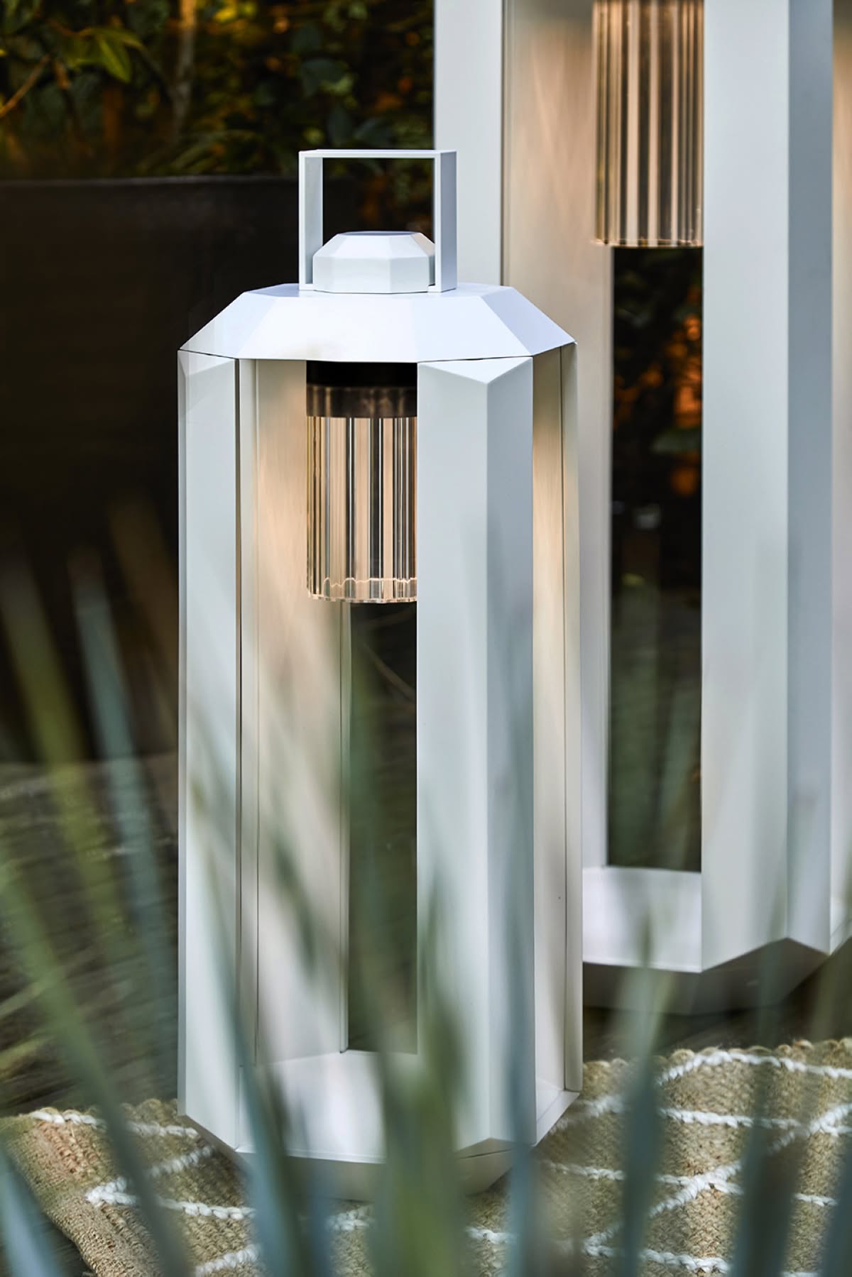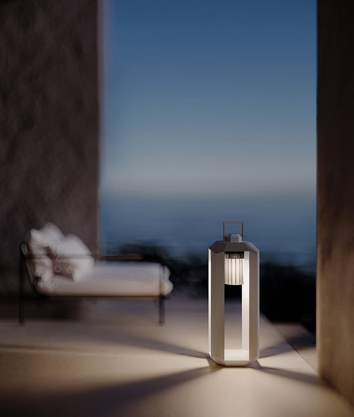 Cube Nomad lampada da esterno di Contardi è la lampada da esterno La collezione Cube, firmata da Massimiliano Raggi, reinterpreta con eleganza la lanterna portatile ed è proposta nelle finiture bronzo o bianco. Nella versione Nomad l’accensione è automatica grazie a una semplice rotazione del corpo batteria posizionato nella parte superiore; per la ricarica è sufficiente rimuoverlo e collegarlo alla corrente, senza spostare la lampada. Con lo stesso cuore luminoso di Clara, Cube outdoor a batteria si distingue per il suo sistema di accensione intuitivo e la ricarica semplificata tramite corpo estraibile. La collezione rappresenta una scelta privilegiata per i contesti nautici, selezionata da Next Yacht Group per valorizzare uno dei suoi yacht più esclusivi. Cube outdoor è disponibile nelle finiture in bronzo scuro o total white, IP65 e Marine Grade, anche nella versione cablata. Cube è ora disponibile anche nel formato mini.