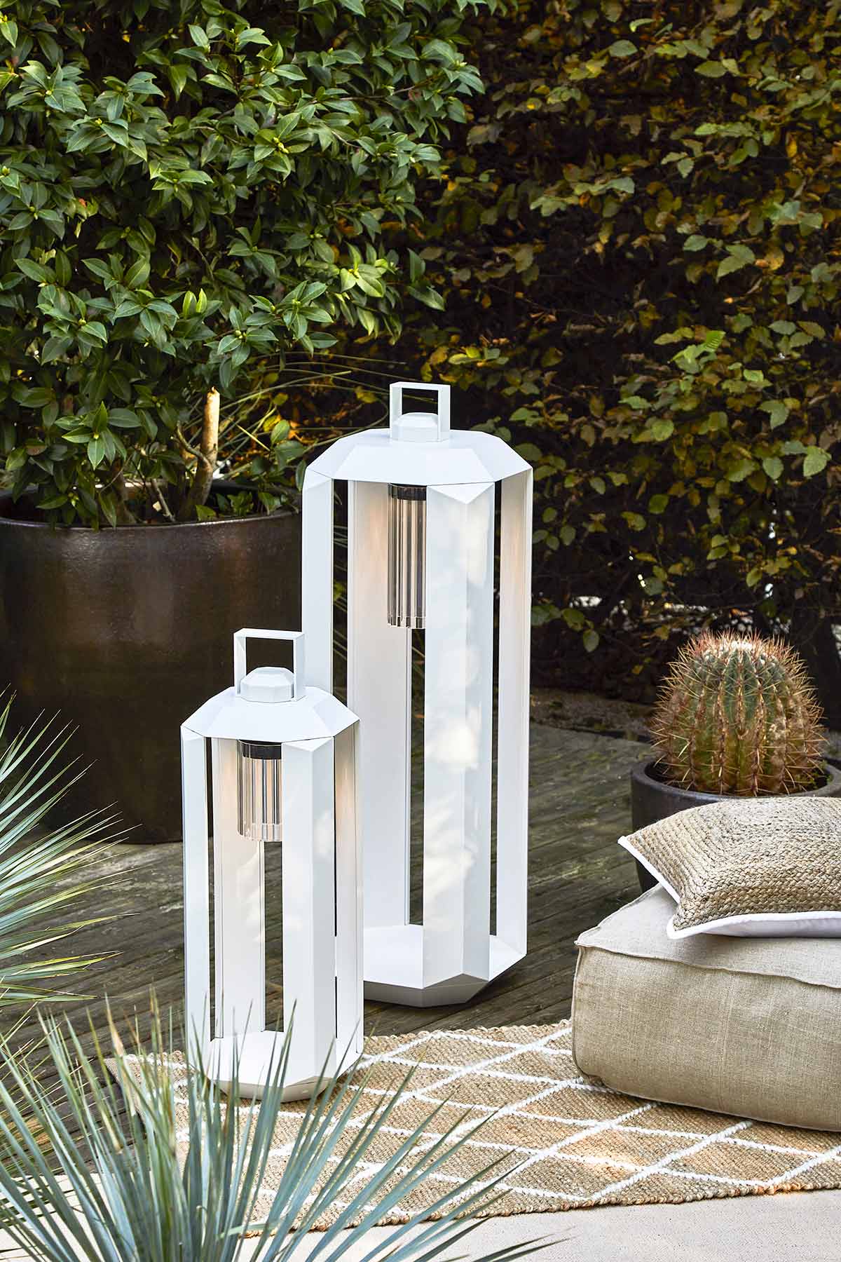 Cube Outdoor Battery lampada da esterno di Contardi è la lampada da esterno incarnazione della filosofia di Contardi di portare l’interior design all’esterno, per un outdoor funzionale e di classe. Il modello Cube diventa oggi lanterna da esterno in versione a batteria ricaricabile o cablata. Il modello a batteria presenta un nuovo ed innovativo sistema di accensione, senza interruttore: il solo posizionamento del corpo batteria sul supporto permette l’accensione automatica con una lieve rotazione. Per la ricarica non occorre spostare tutto il prodotto, ma è sufficiente rimuovere il corpo batteria e collegarlo alla corrente. Disponibile con interno oro satinato ed esterno laccato effetto bronzo chiaro oppure tutta in bianco (interno ed esterno).