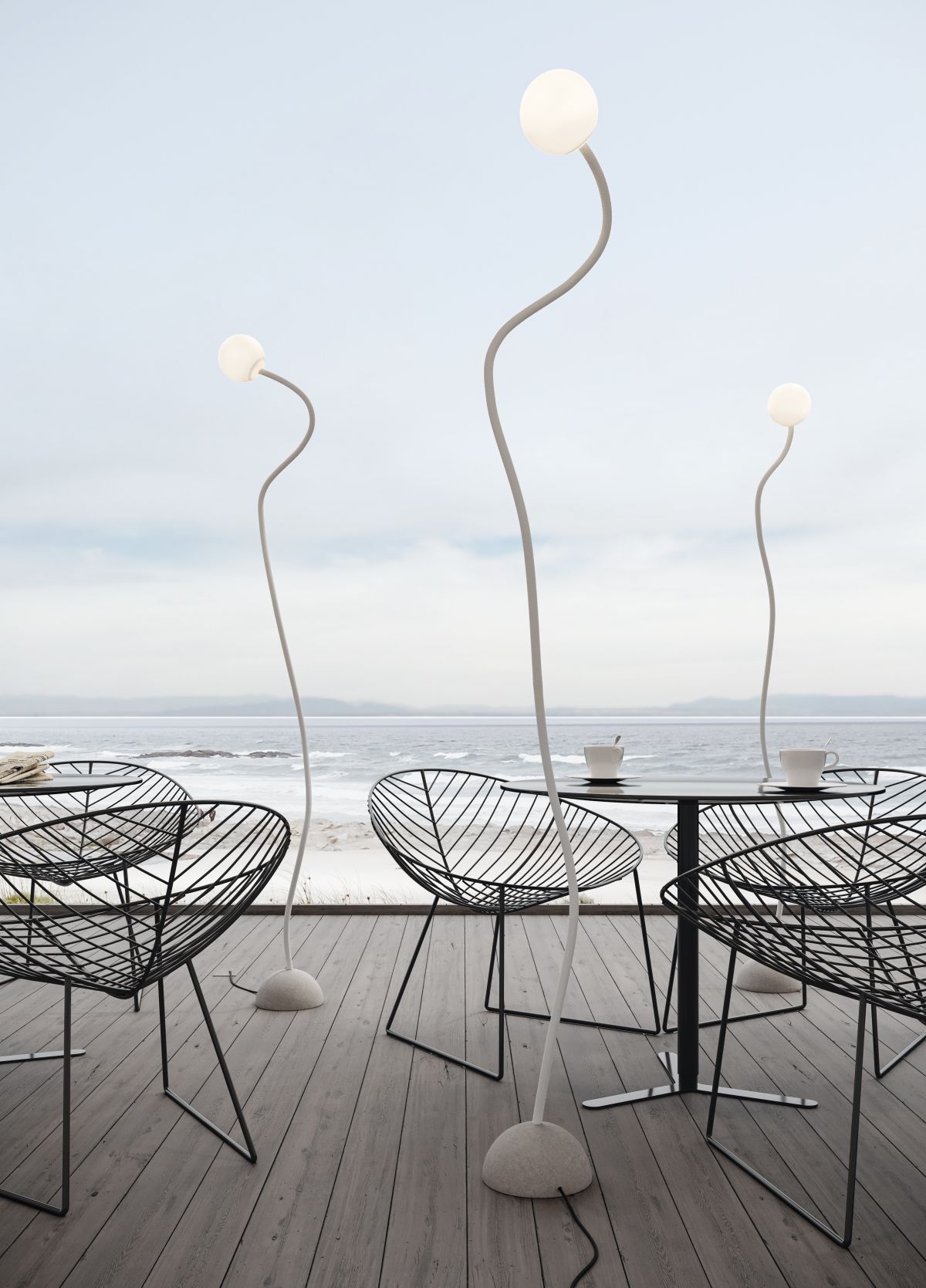 Moony H 145 Lampada da esterno di Karman è la lampada da esterno che sa mostrare la sua faccia migliore adattandosi alle emozioni grazie al braccio flessibile. Una famiglia versatile, declinata in applique monobraccio, piantana in due altezze e plafoniere a braccio singolo, a tre o addirittura cinque bracci per le personalità più complesse. La versione da terra si erge verso il soffitto o si piega verso di sé come lampada da lettura mentre la versione applique si direziona a piacimento, con le plafoniere a tre o cinque bracci, che si liberano da un piccolo cilindro fissato a soffitto, sbizzarrendosi con la propria fantasia. Il suo stelo mobile in metallo rivestito con una calza telata bianca sostiene un globo in vetro satinato bianco opaco che porta la fonte LED. La base a semisfera in cemento porta due altezze per Moony piantana. Disponibile anche nella versione da esterno.