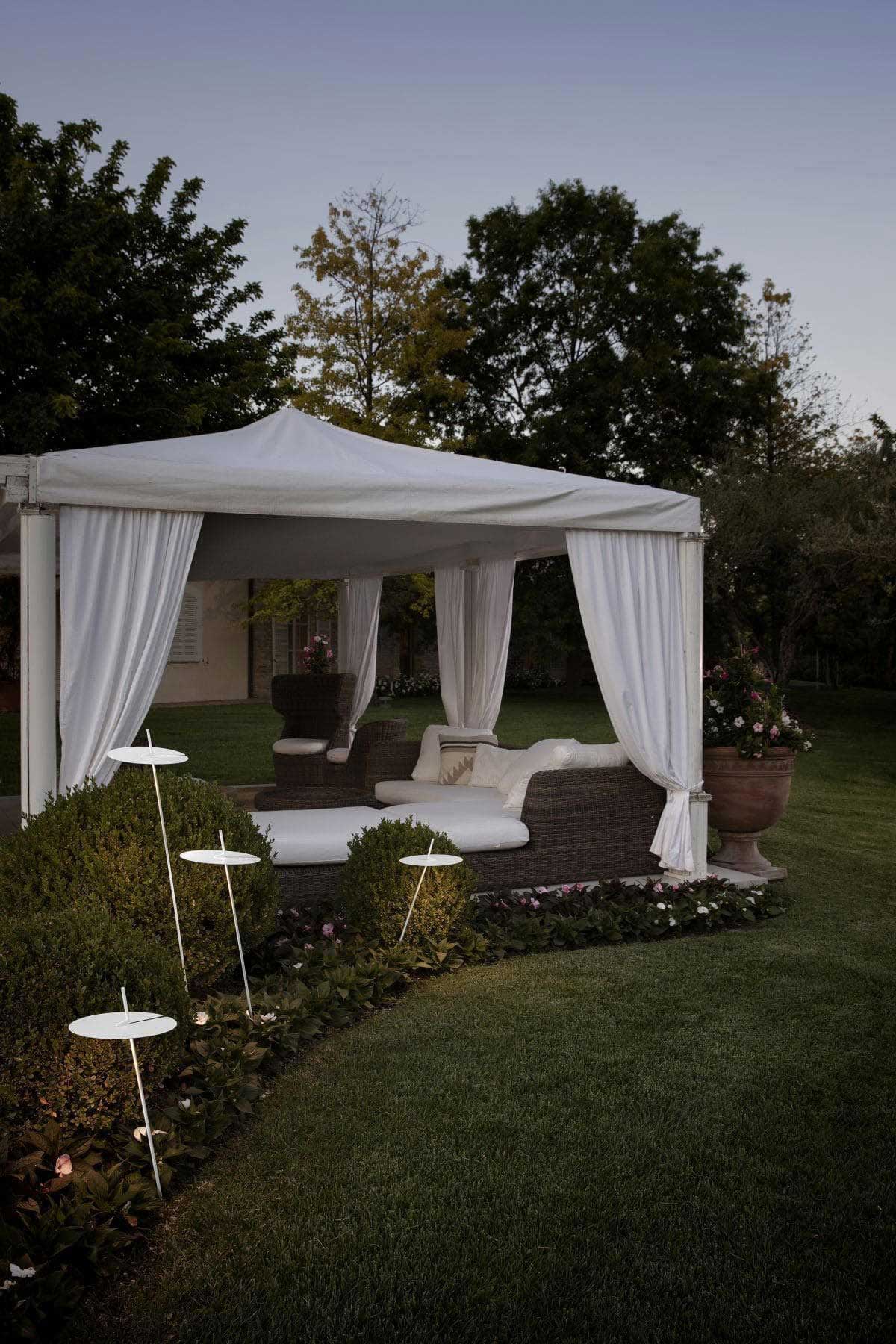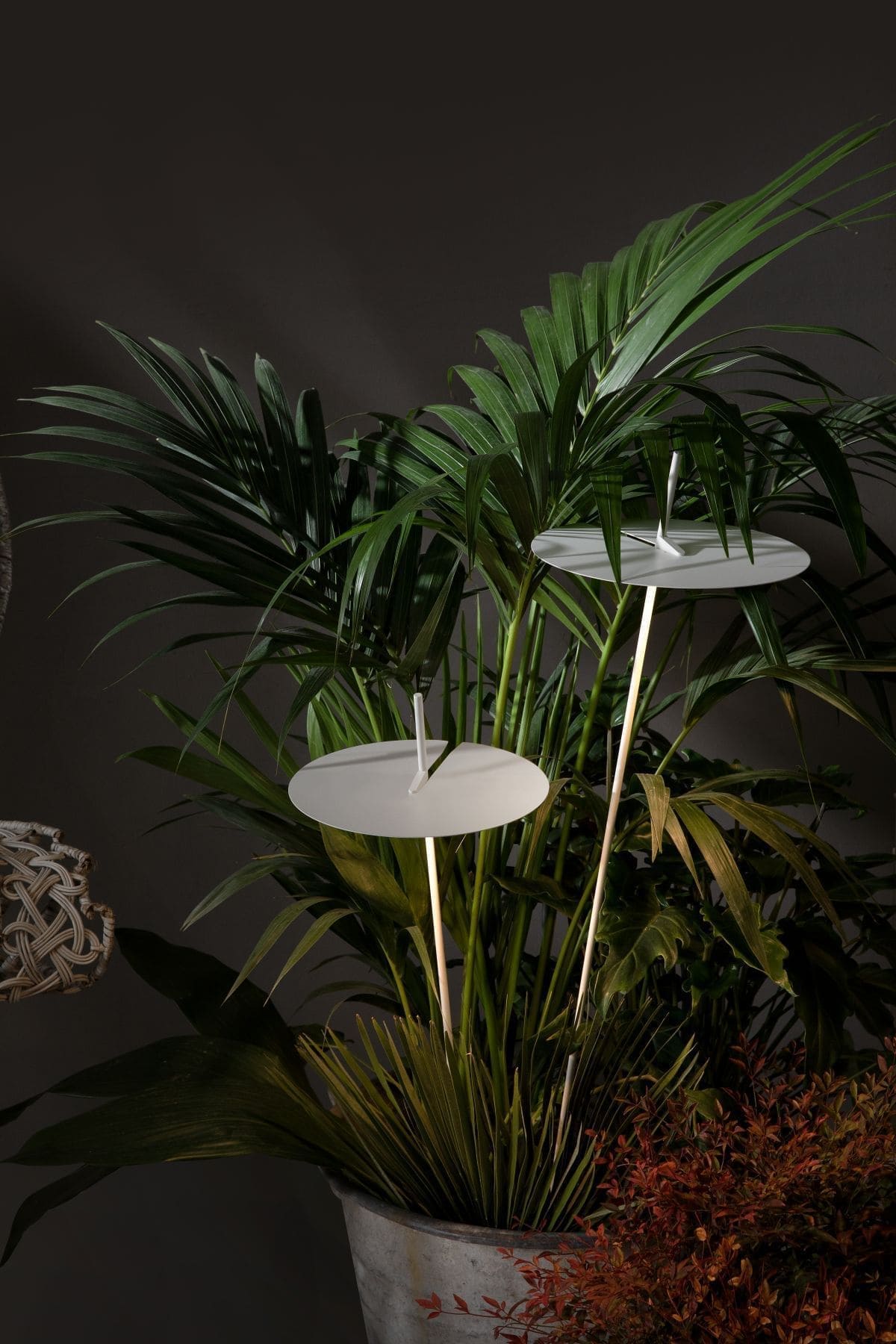 Xana H 130 con picchetto H 33 Lampada da esterno di Karman è la lampada da esterno leggera e fatta per stare all’aperto; il suo disco, che nasconde la fonte luminosa a LED nella parte inferiore, ha le fattezze di una delicata ninfea bianca. Grazie al suo picchetto in diverse altezze può illuminare percorsi all’aperto o si può piantare come un fiore tra la vegetazione del nostro terrazzo o giardino.