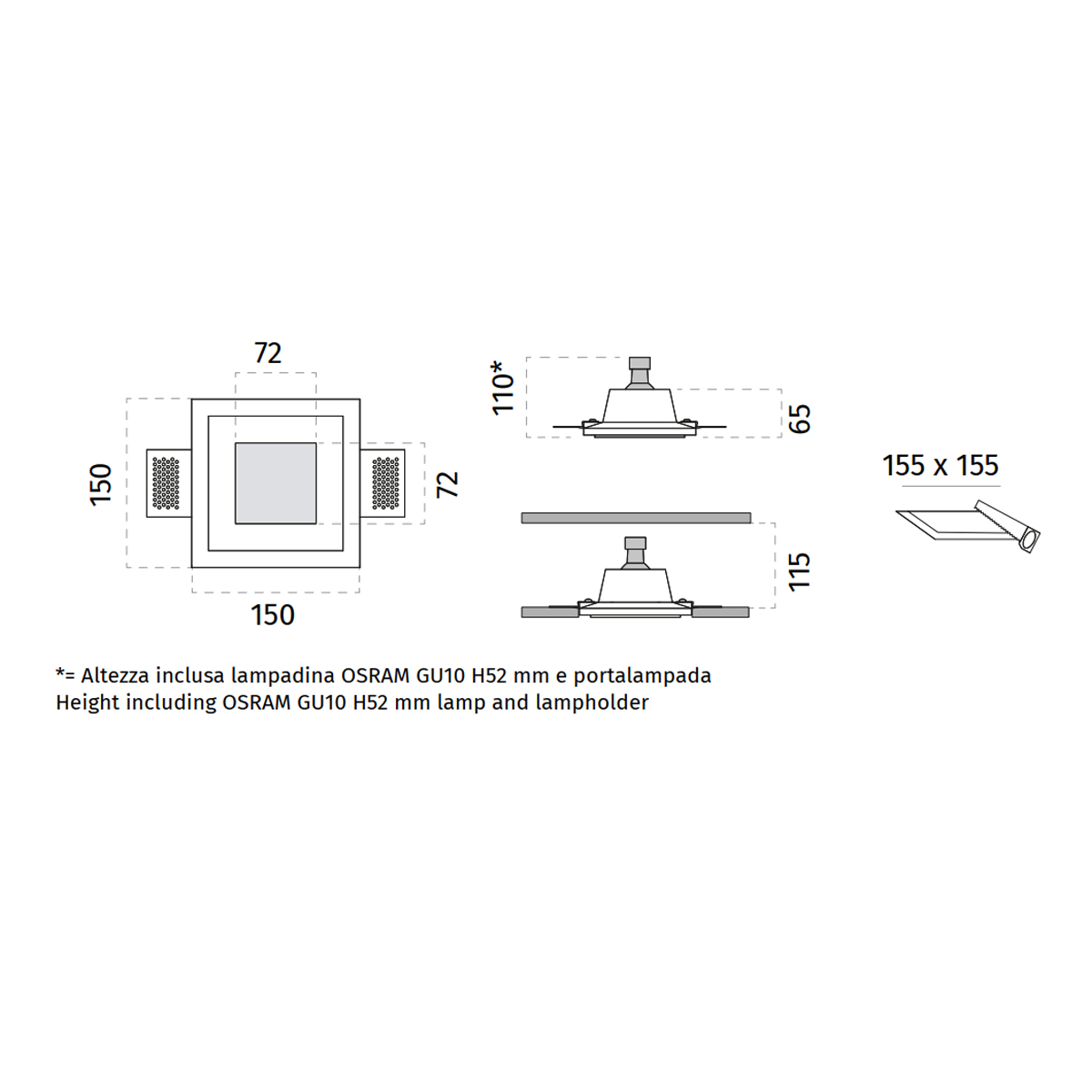 Profondità nel cartongesso: 115 mm