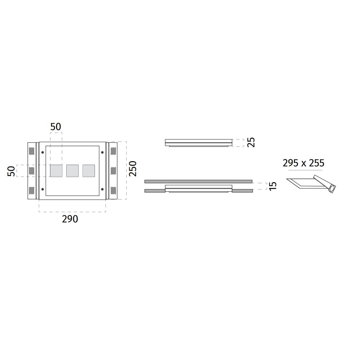 Foro sul cartongesso: 295 mm x 255 mm