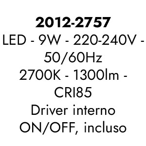 2012-2757: LED - 9W - 220-240V - 50/60Hz 2700K - 1300lm - CRI85 Driver interno ON/OFF, incluso | IP20 | Luce indiretta