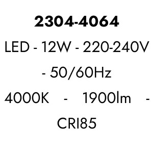 2304-4064 LED - 12W - 220-240V - 50/60Hz 4000K - 1900lm - CRI85 Driver interno ON/OFF, incluso | IP20 | Luce indiretta